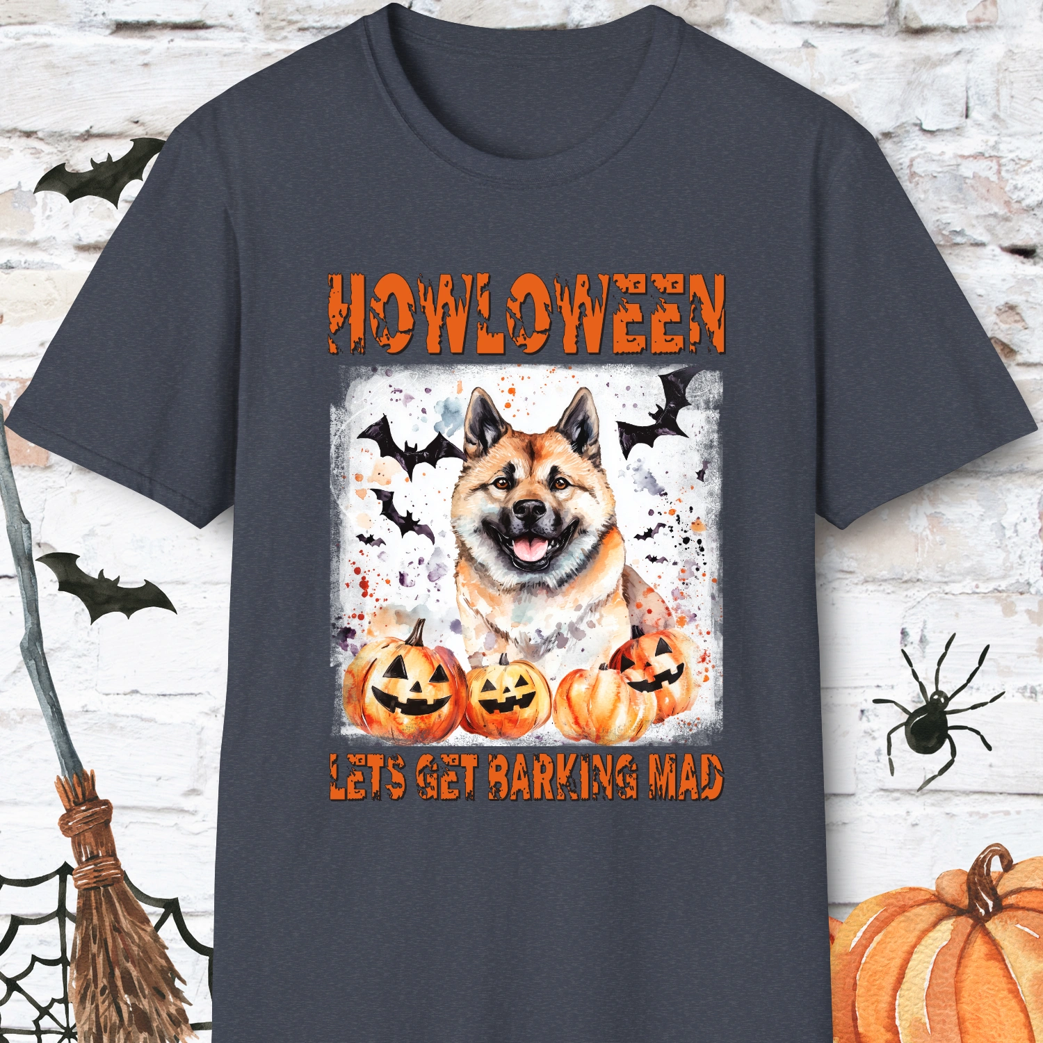 Celebrate Halloween in whimsical style with our 'Howloween' Akita T-shirt. Featuring pumpkins, bats, and a playful pup, this festive dog lover tee is perfect for spooky season fun. A great Halloween shirt for Akita owners and pet lovers alike.
