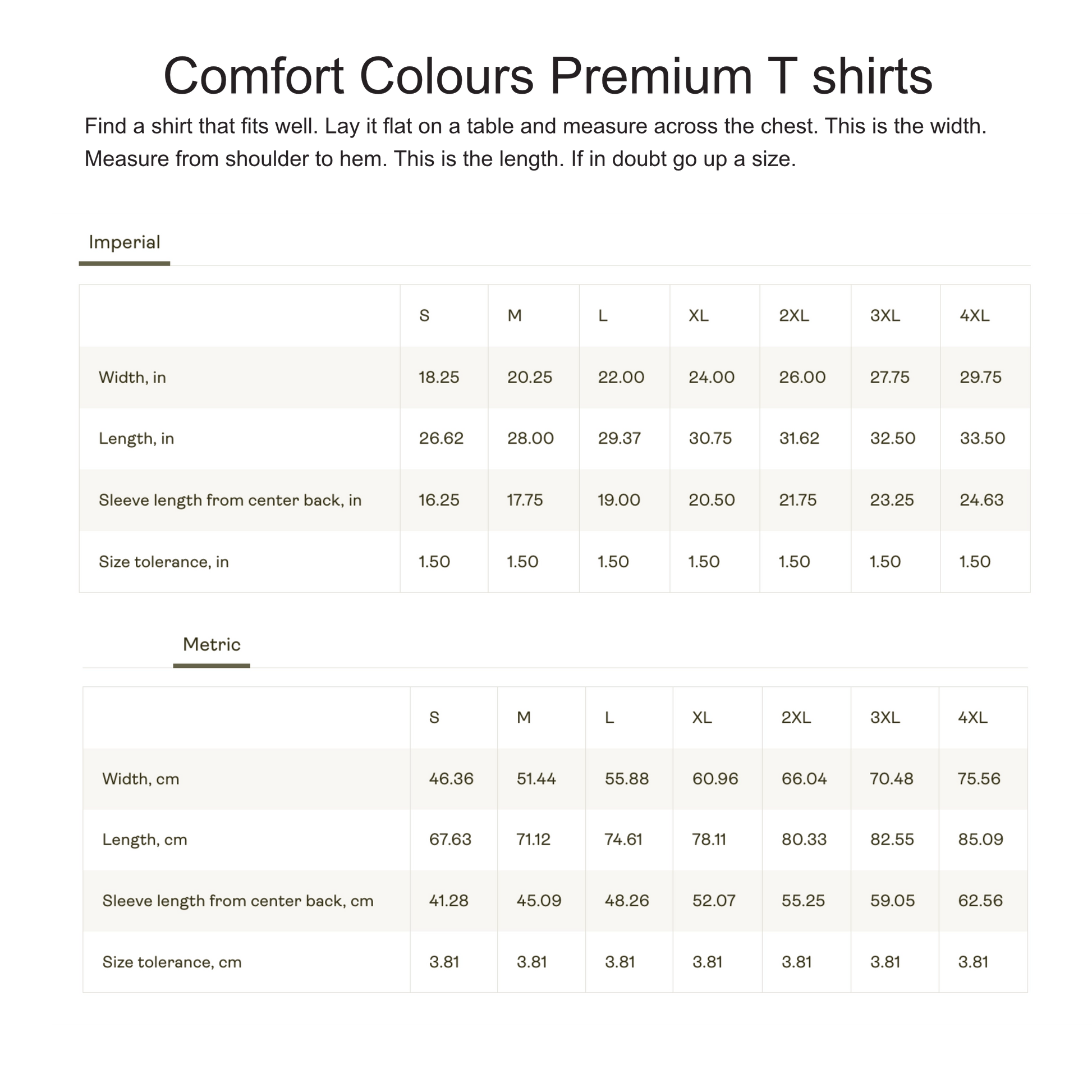 COMFORT COLOURS - OUR PREMIUM T SHIRT FULL COLOUR RANGE FOR THE USA.