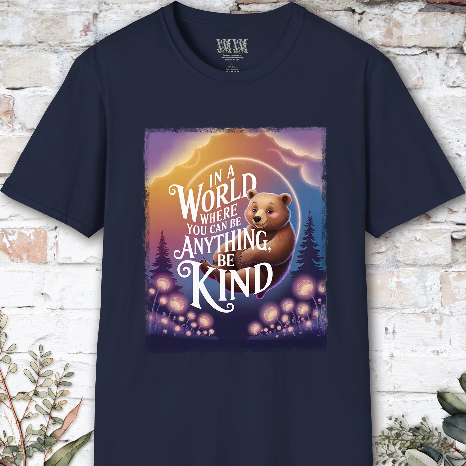 Spread love and positivity with this heartwarming design featuring a cute Bear and the inspiring message, “In a world where you can be anything, be kind.” Perfect for nature lovers and dreamers alike, this whimsical tee combines cozy comfort with a beautiful reminder to lead with kindness.