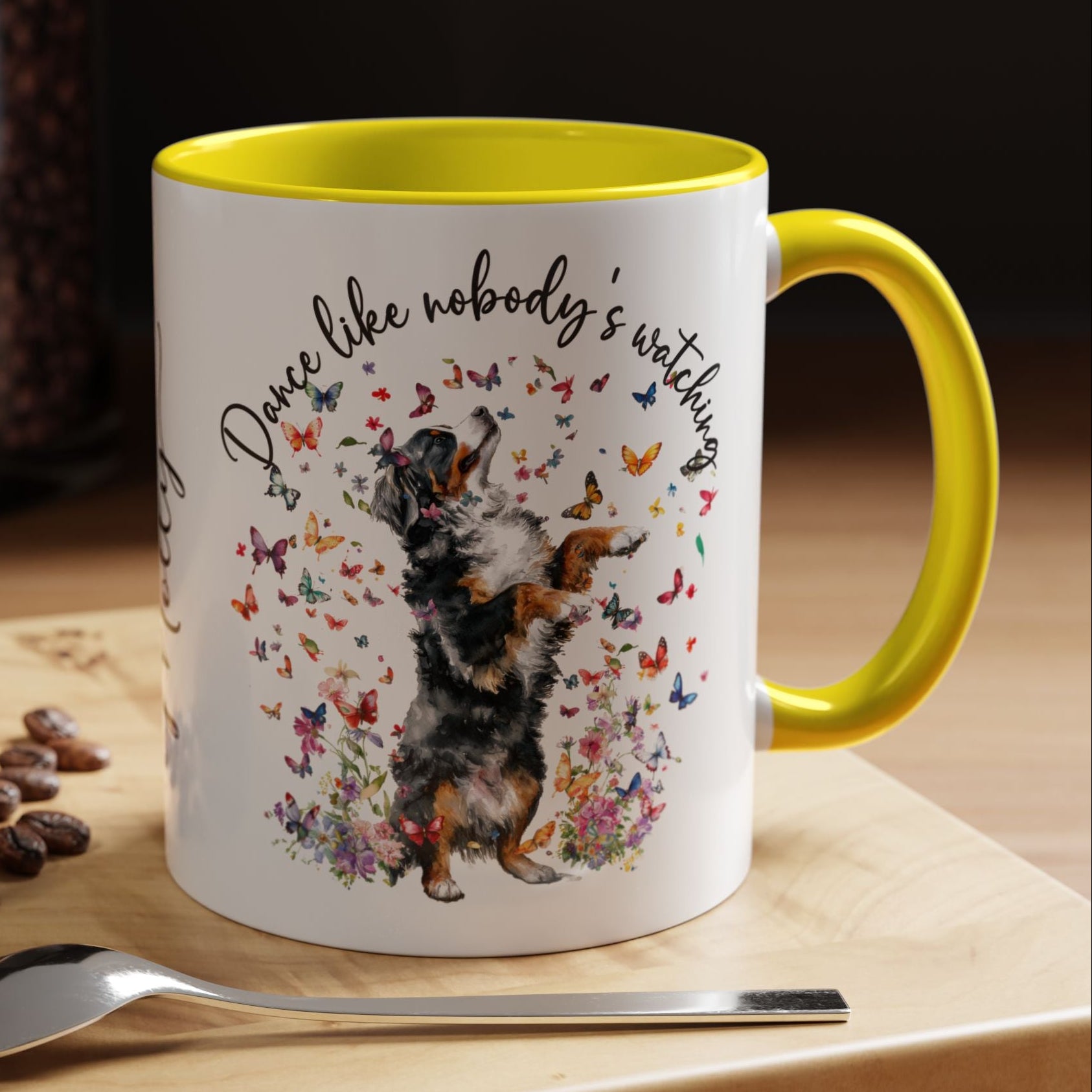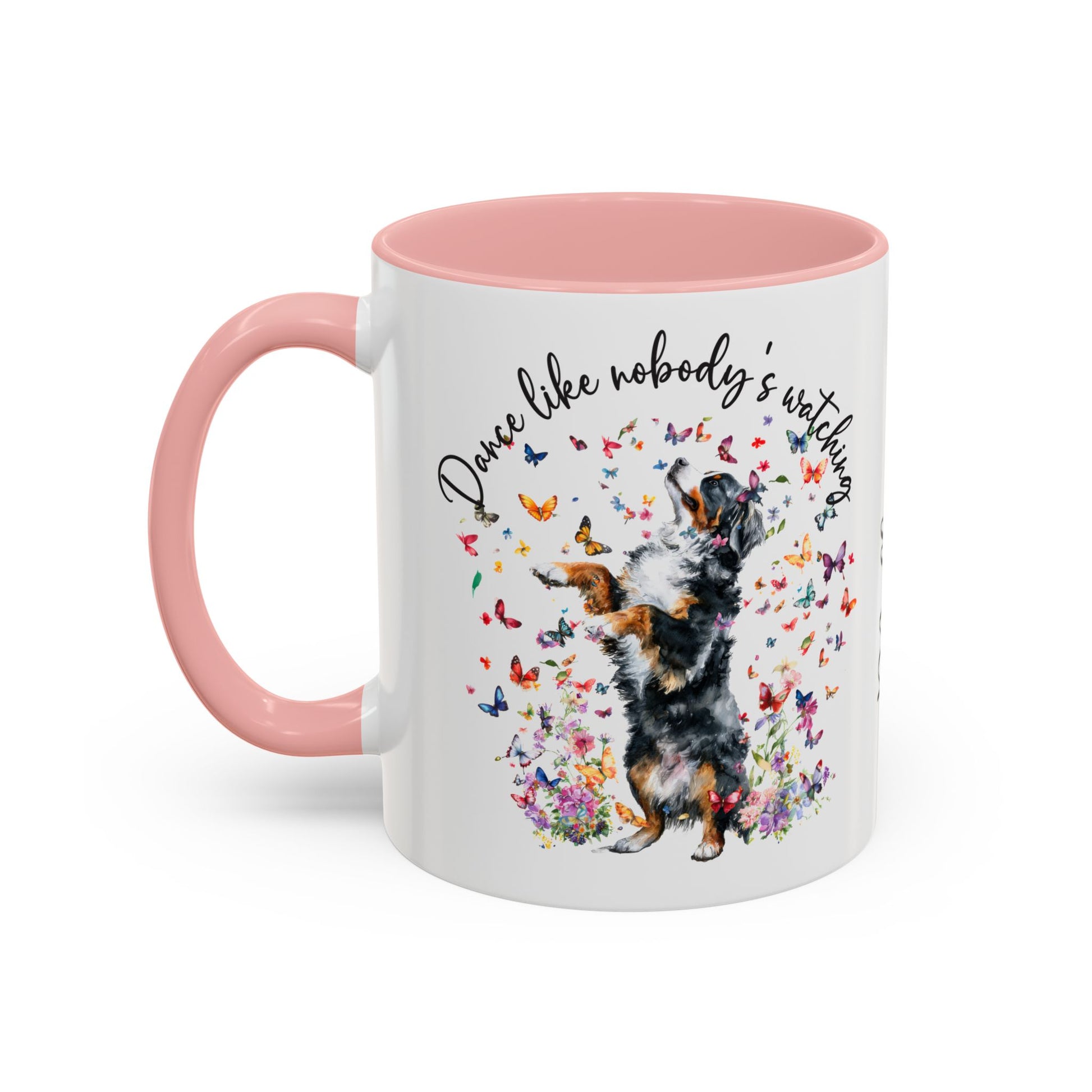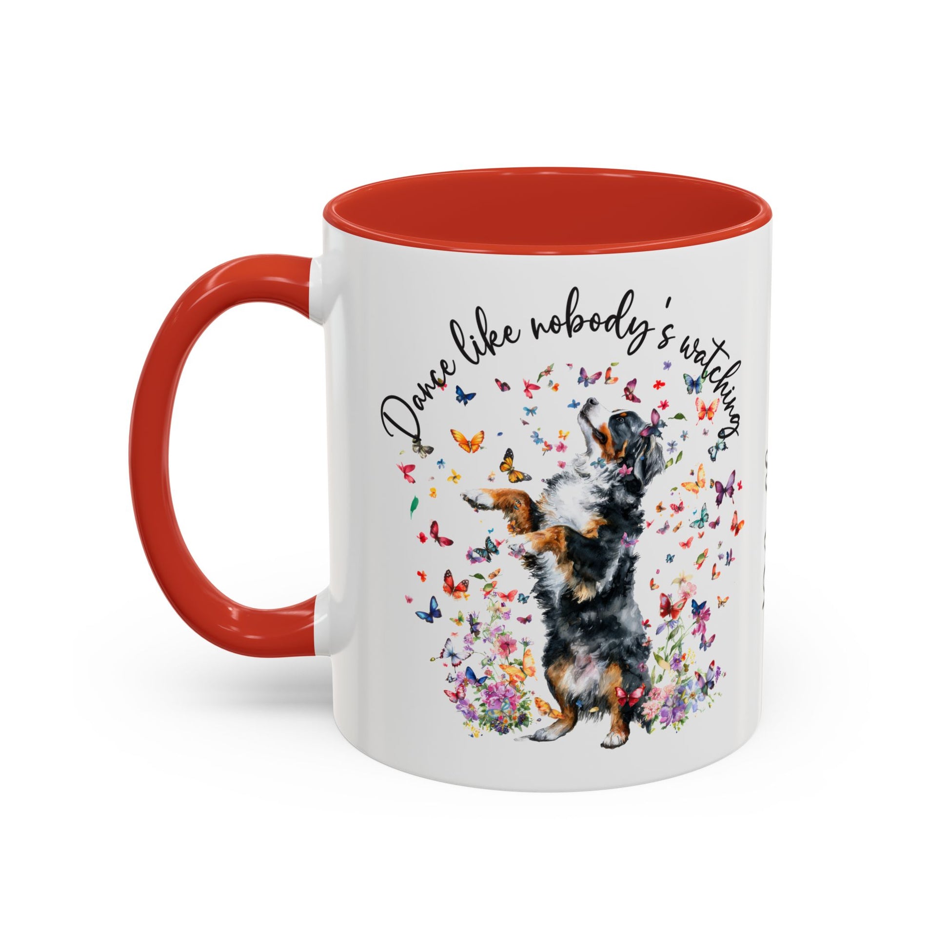 Bernese Mountain Dog "Dance like nobody's watching" personalized colourful Mugs, 11oz