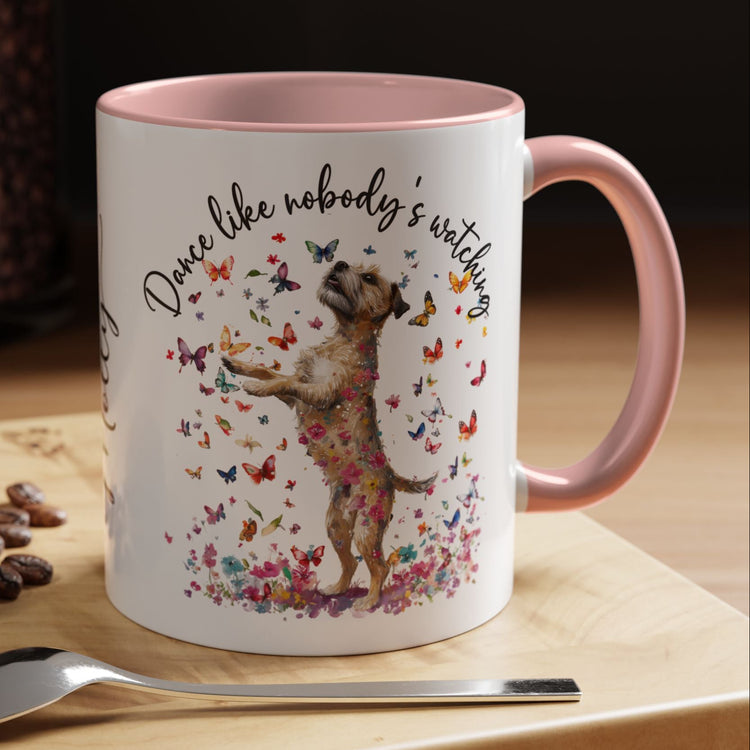 Border Terrier "Dance like nobody's watching" personalized colourful Mugs, 11oz