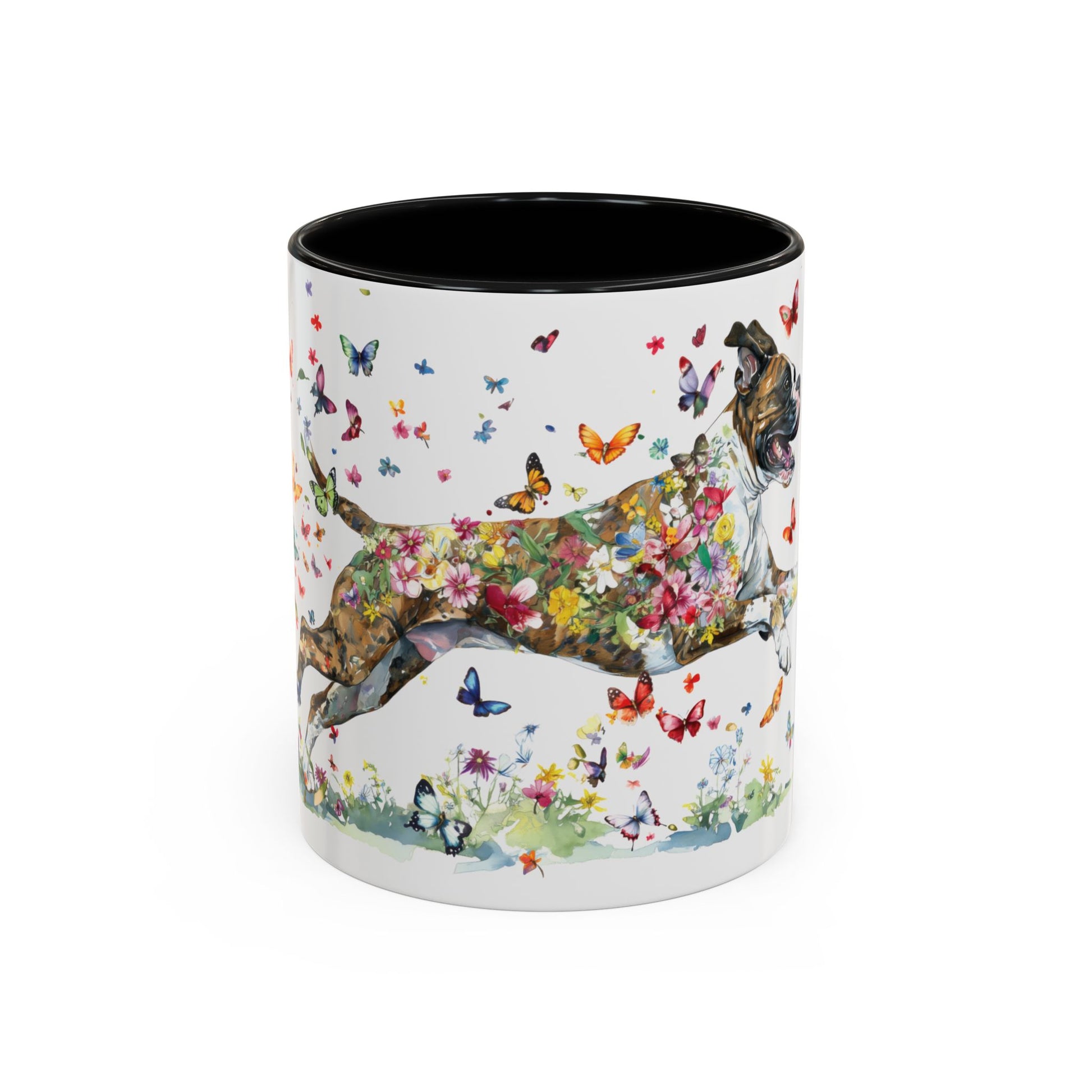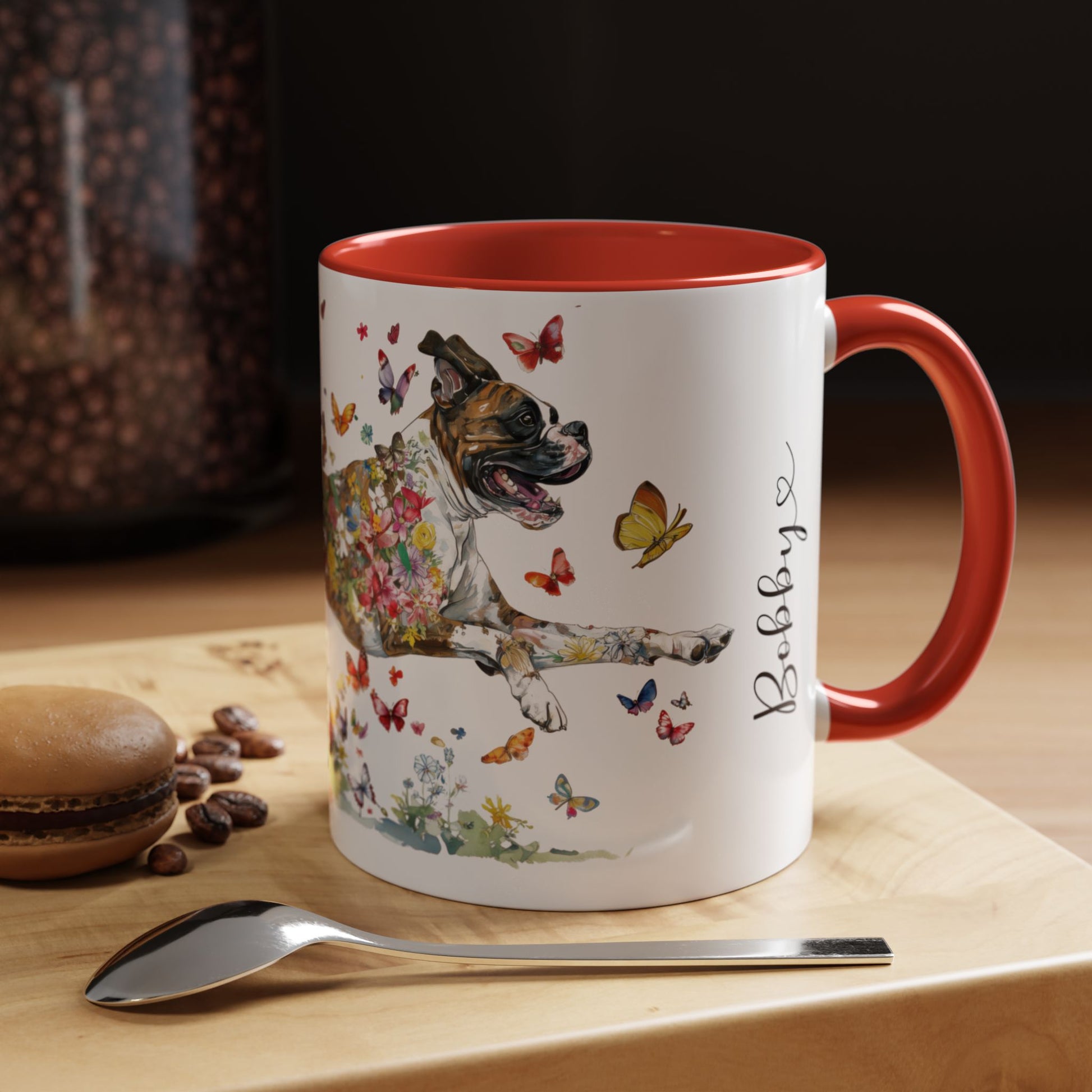 Personalised Boxer butterfly ceramic coffee mug, 11oz. Customise with either your name or your Boxer's name.