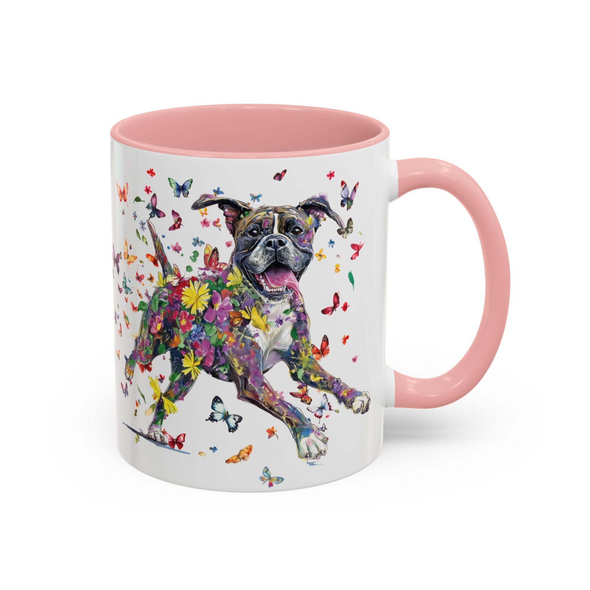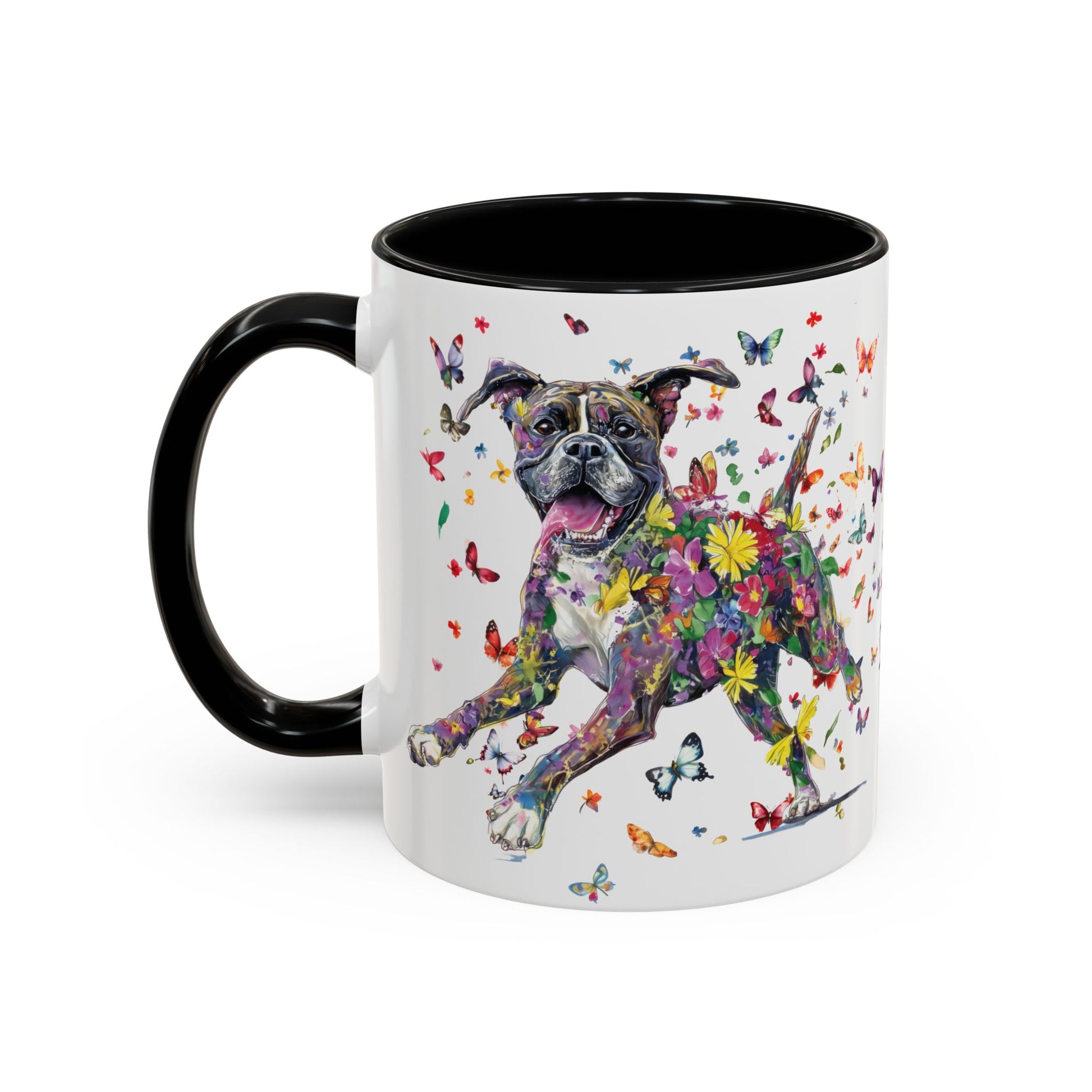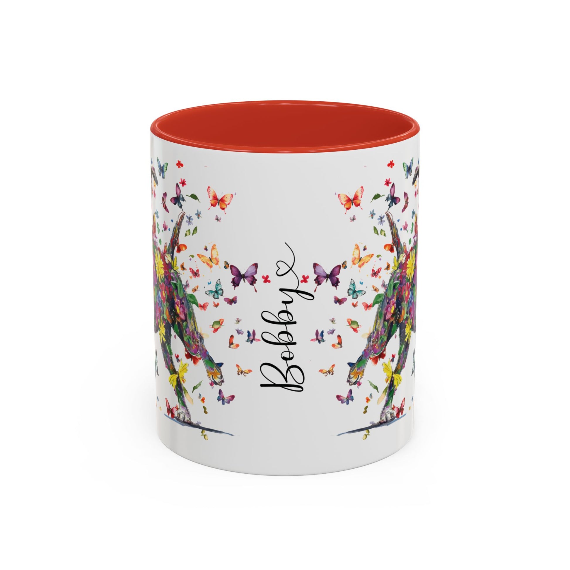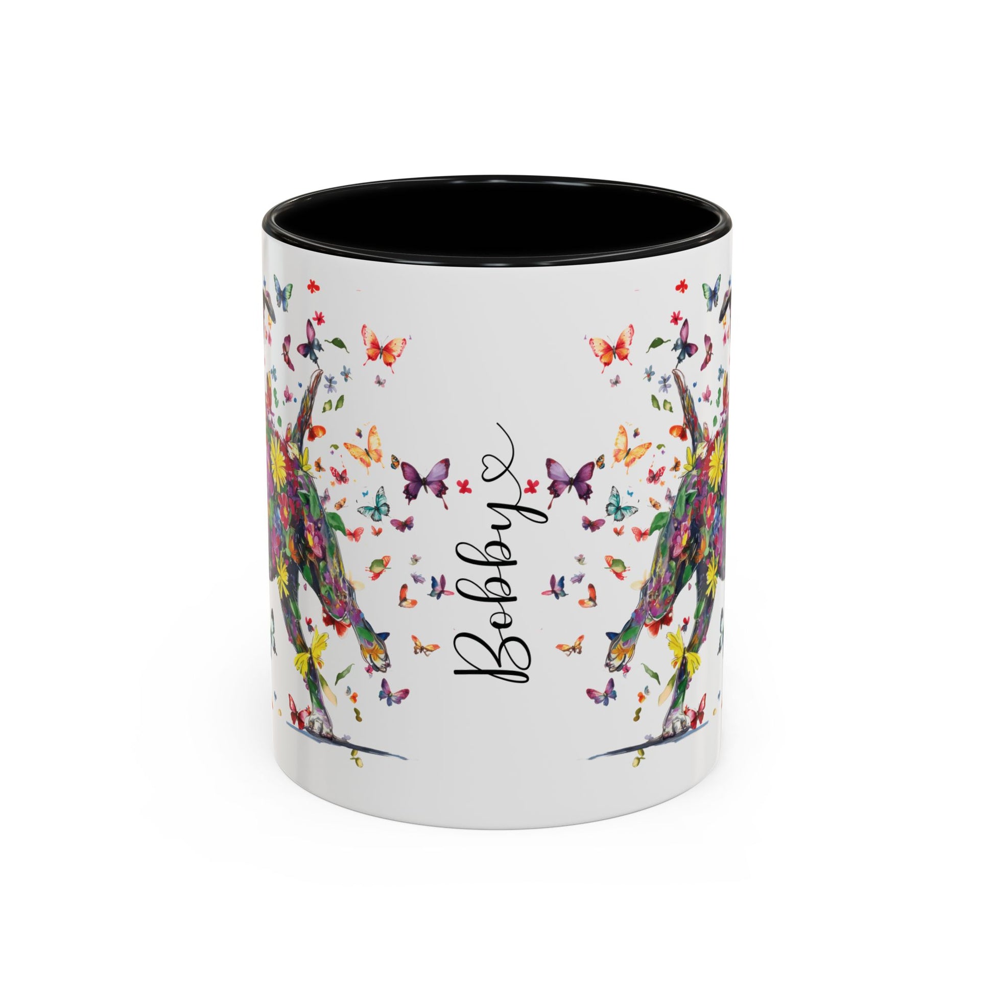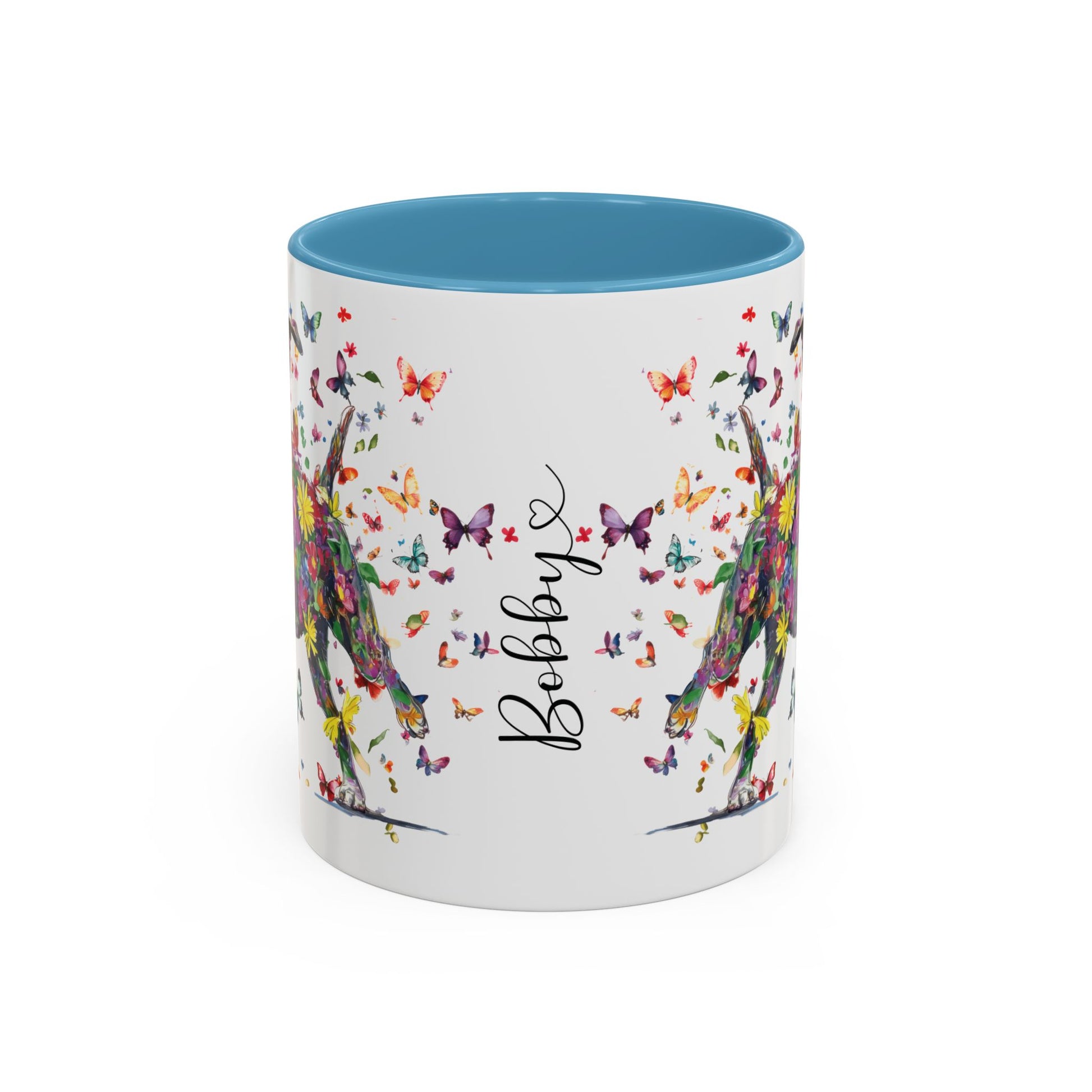 Personalised Boxer butterfly ceramic coffee mug, 11oz. Customise with either your name or your Boxer's name.