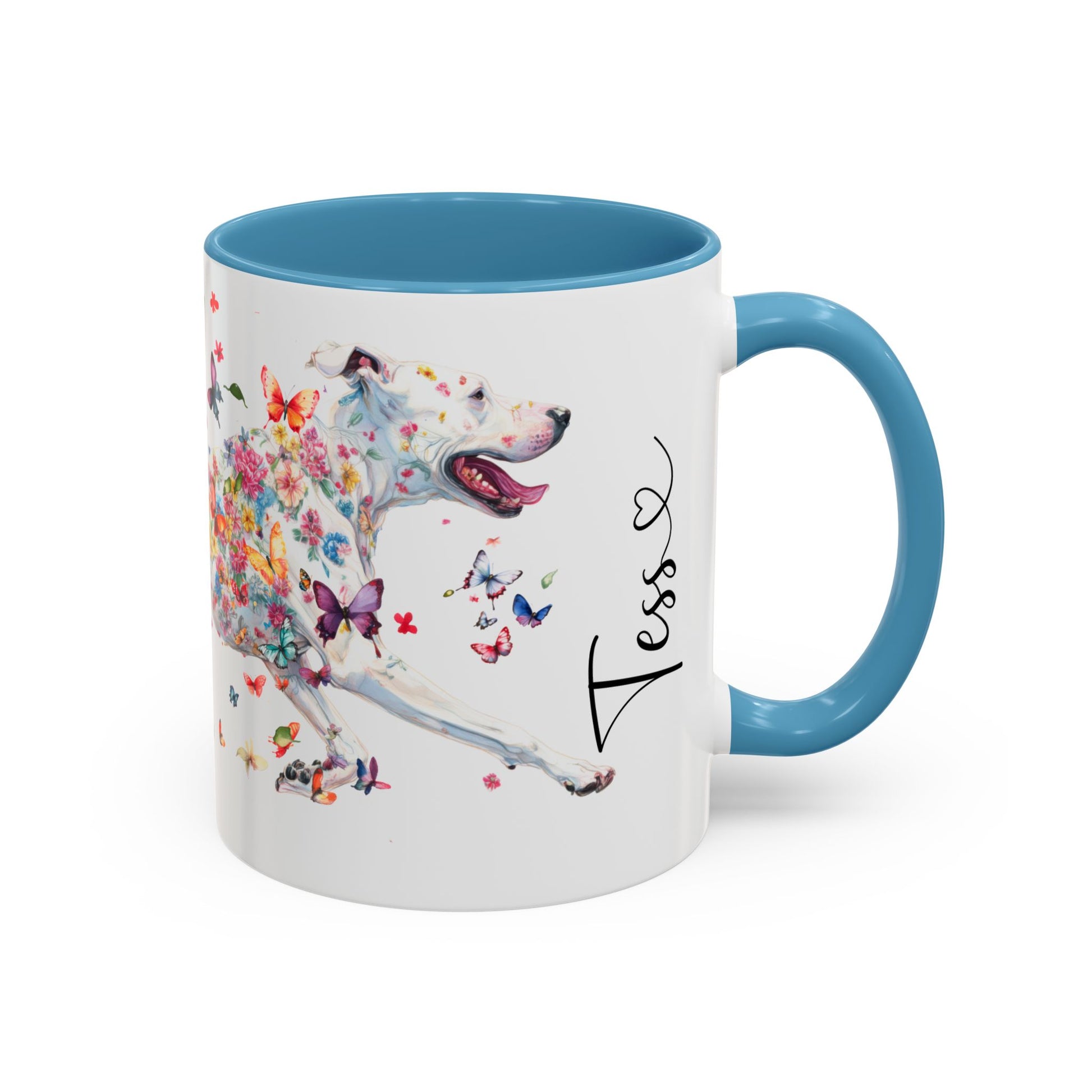 Personalised Bull Arab butterfly & floral ceramic coffee mug, 11oz. Customise with either your name or your pup's name.