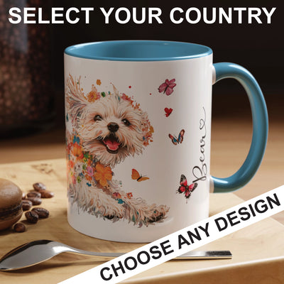 I saw the ad for this t-shirt online. I couldn't resist buying it because it reminds me of a Cavalier I had a few years ago. Her name was Maggie Mae! My middle name and my mother's middle name is Mae. I like the blue collar and the beautiful flowers! Thank you for a fun-shirt to wear!