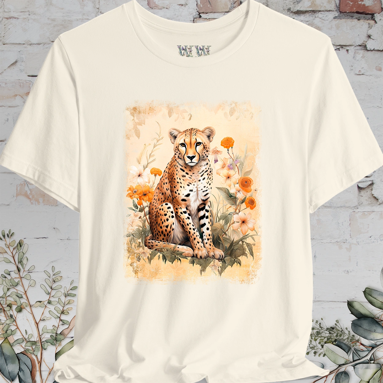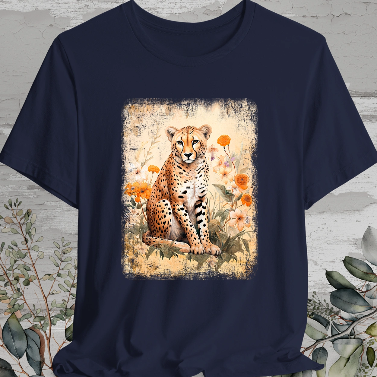 Embrace magic with this whimsical T-shirt featuring a mystical Cheetah nestled among dreamy wildflowers. Perfect for cottage core lovers, this enchanting design captures the beauty & the allure of nature. A perfect gift for anyone who loves natures perfect creatures and the charm of the outdoors.