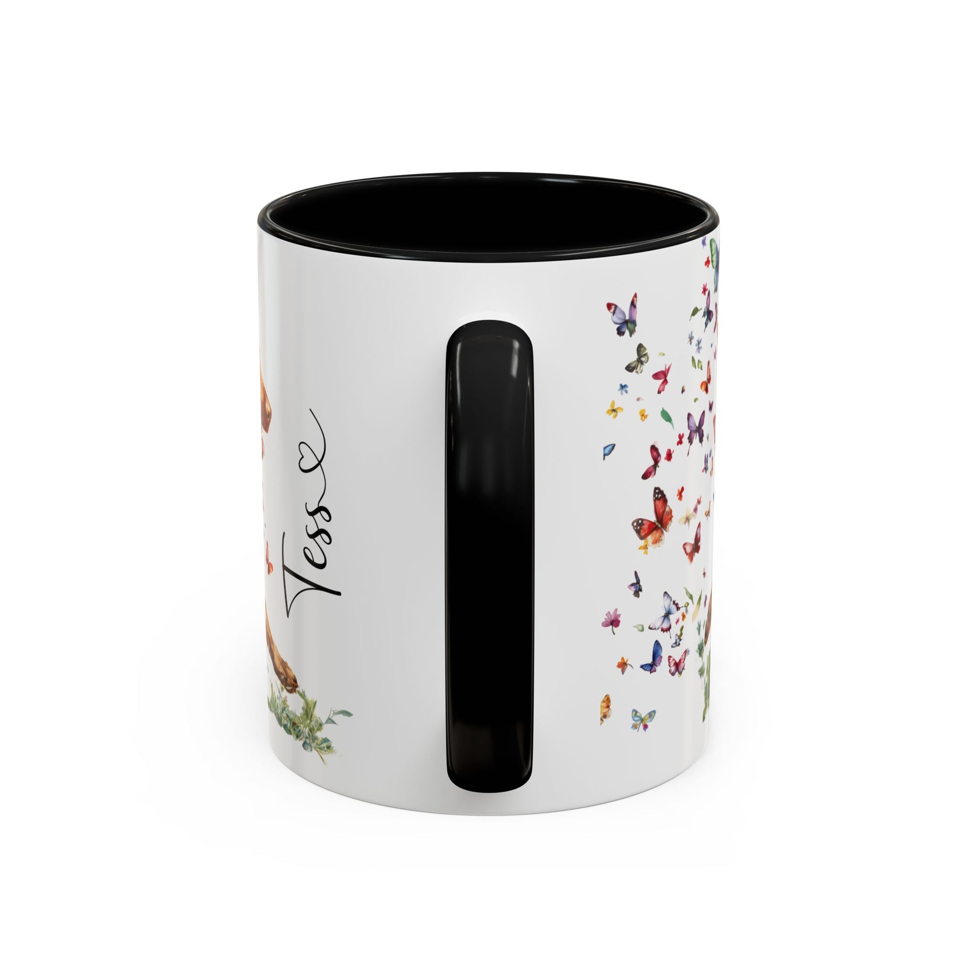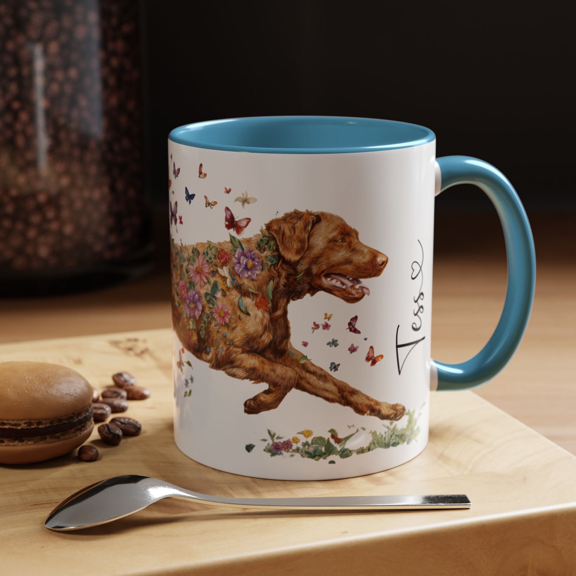 Personalised Chesapeke Bay Retriever butterfly ceramic coffee mug, 11oz. Customise with either your name or your Retriever's name.