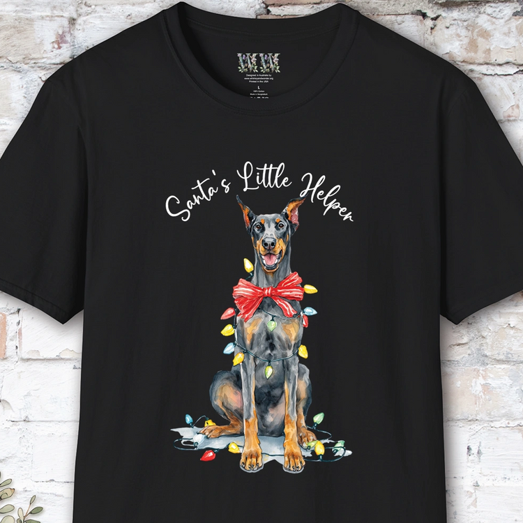 Doberman Pinscher #1 (Crop ears) Santa's little helper. unisex T shirt