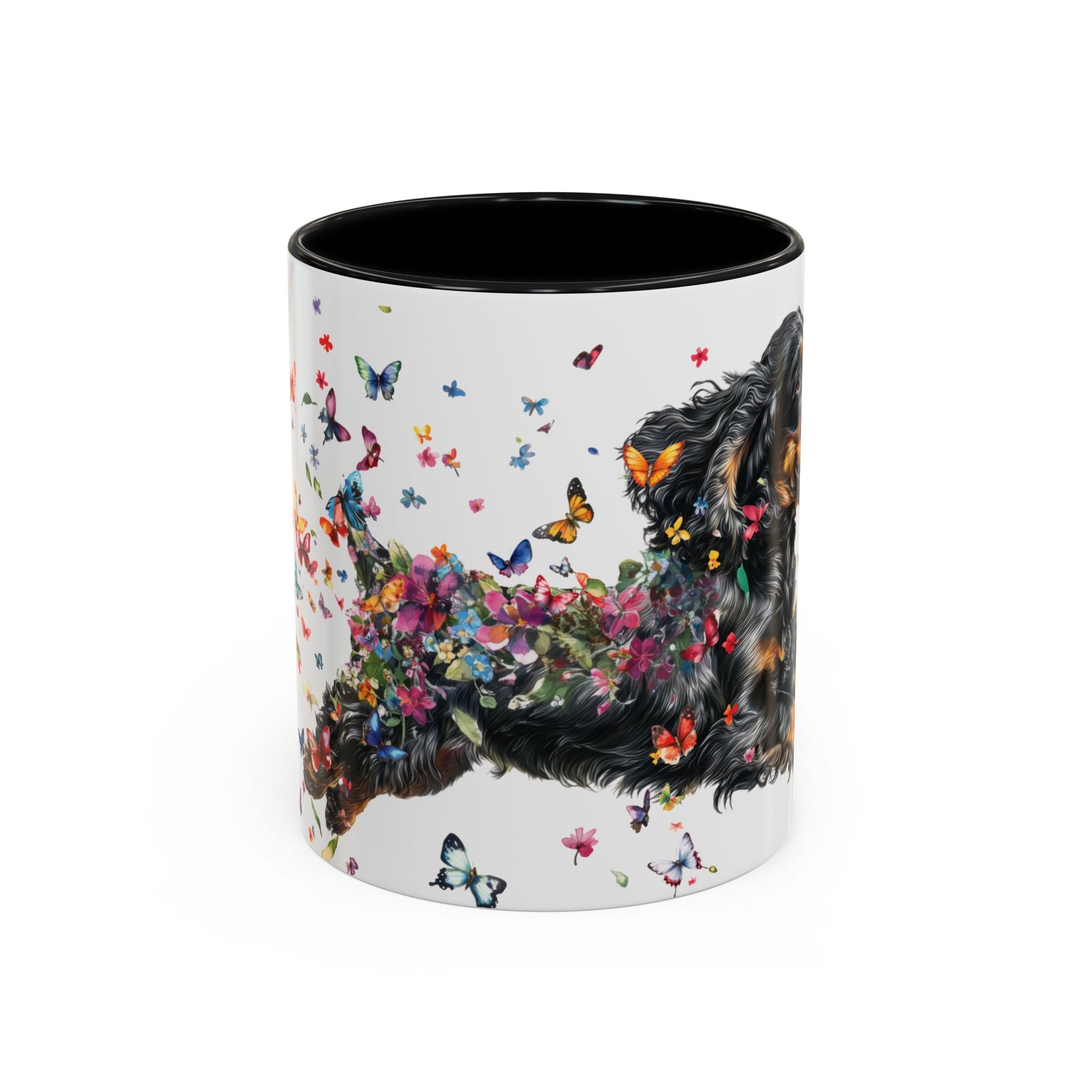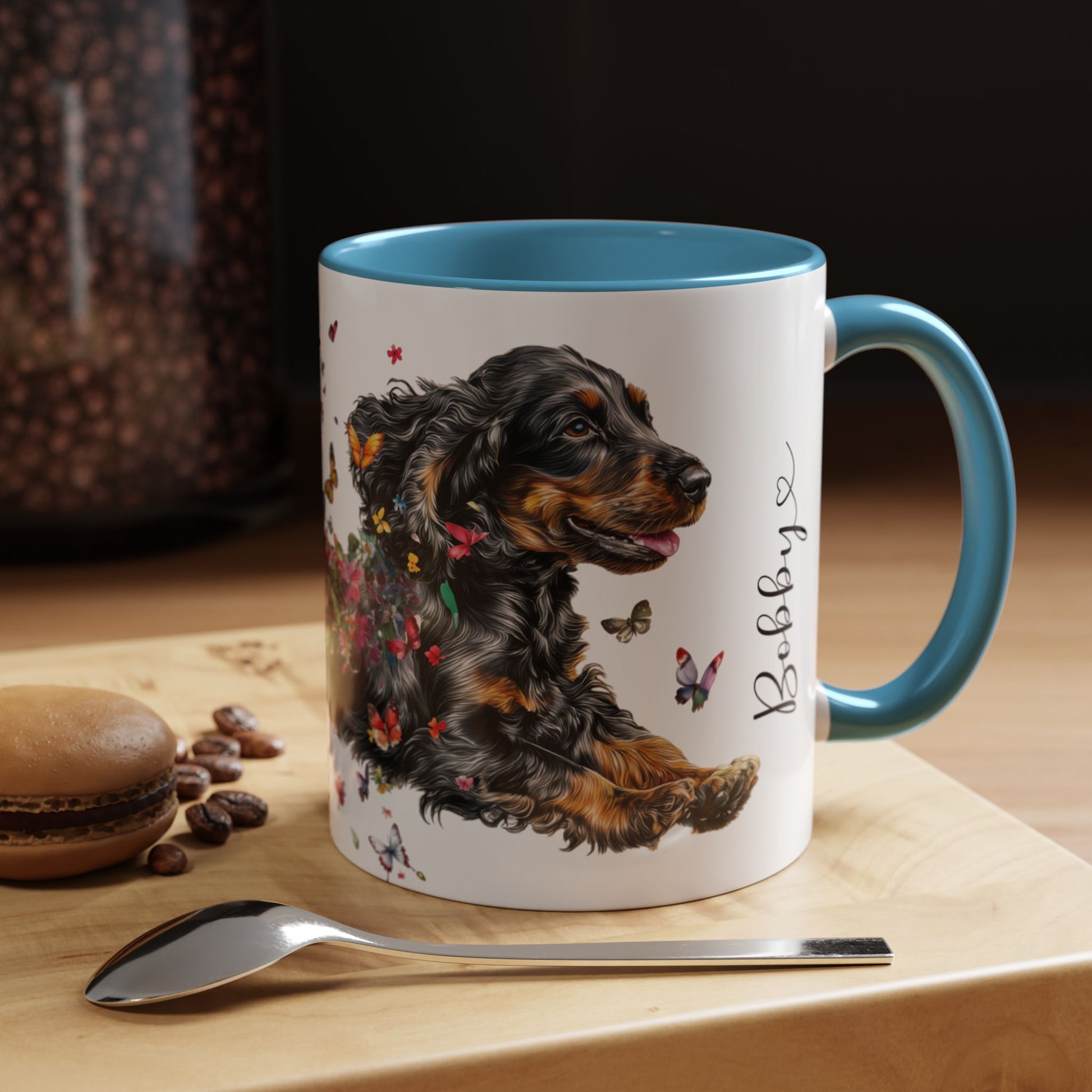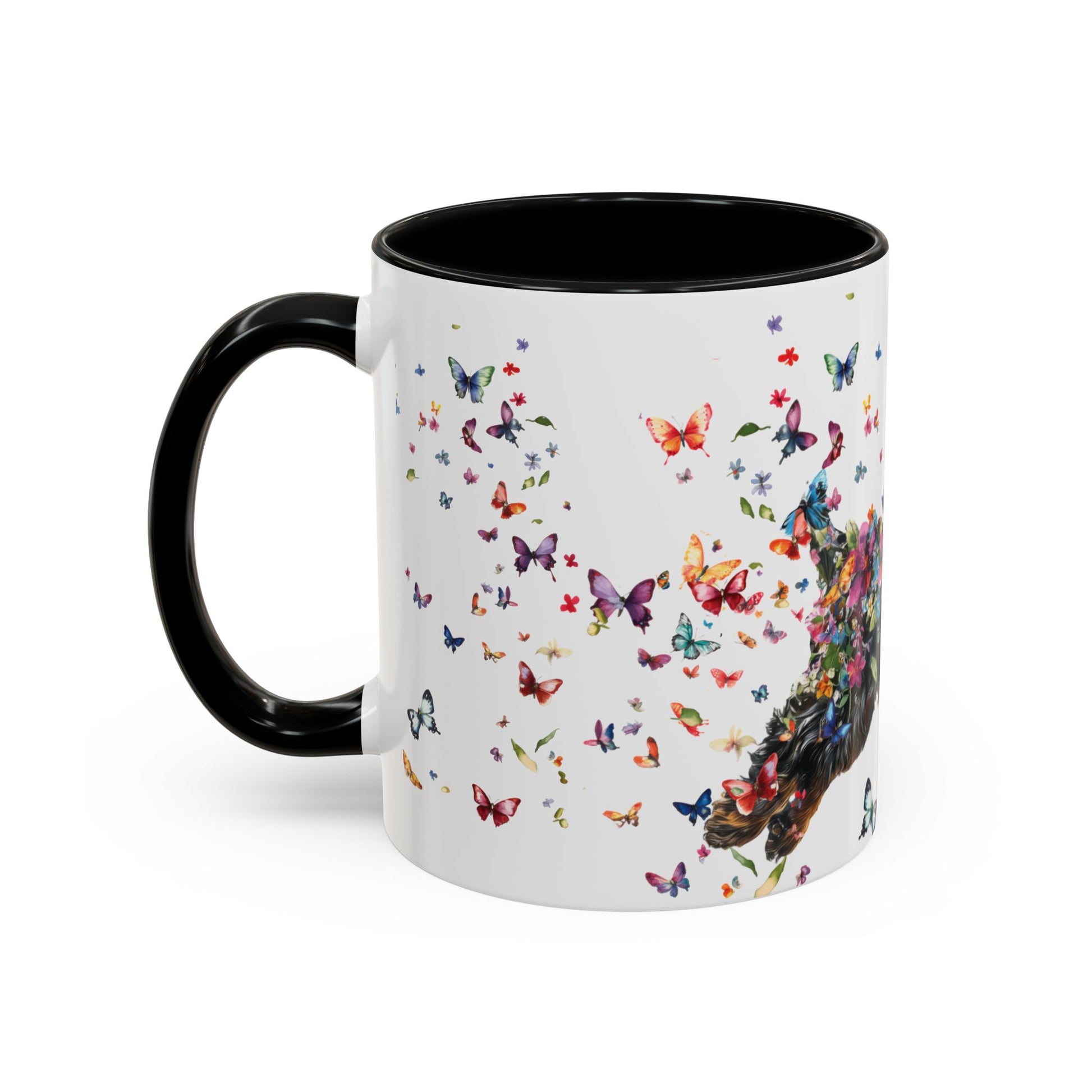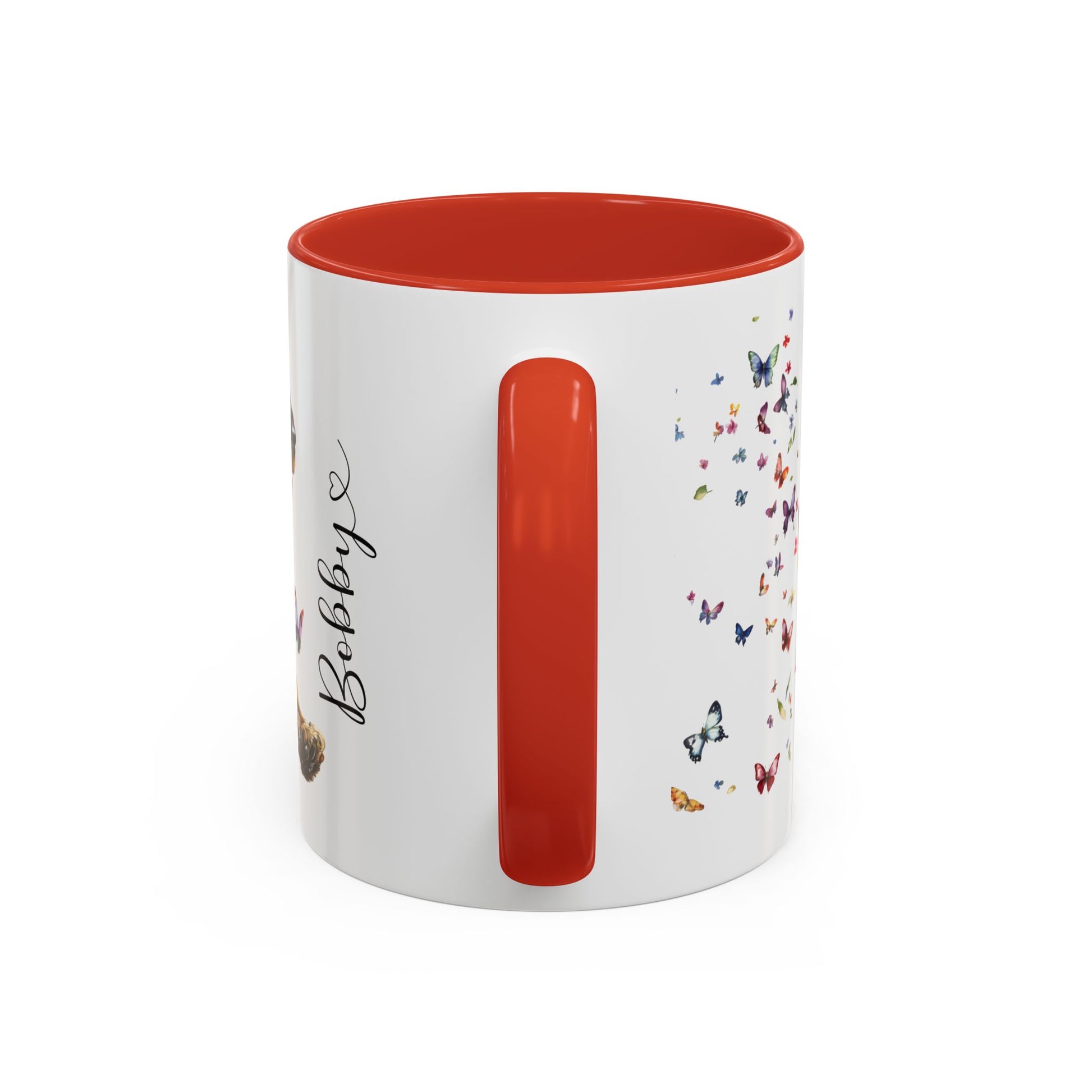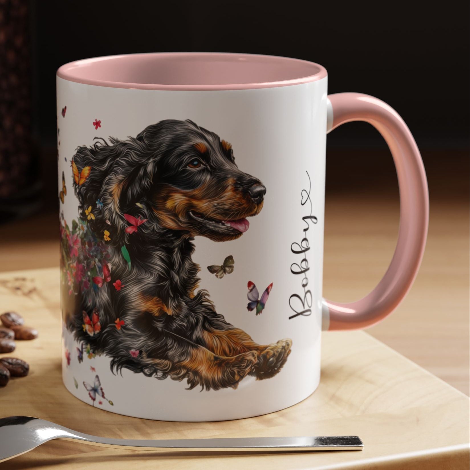 Personalised English Cocker Spaniel butterfly ceramic coffee mug, 11oz. Customise with either your name or your English Cocker Spaniel's name.