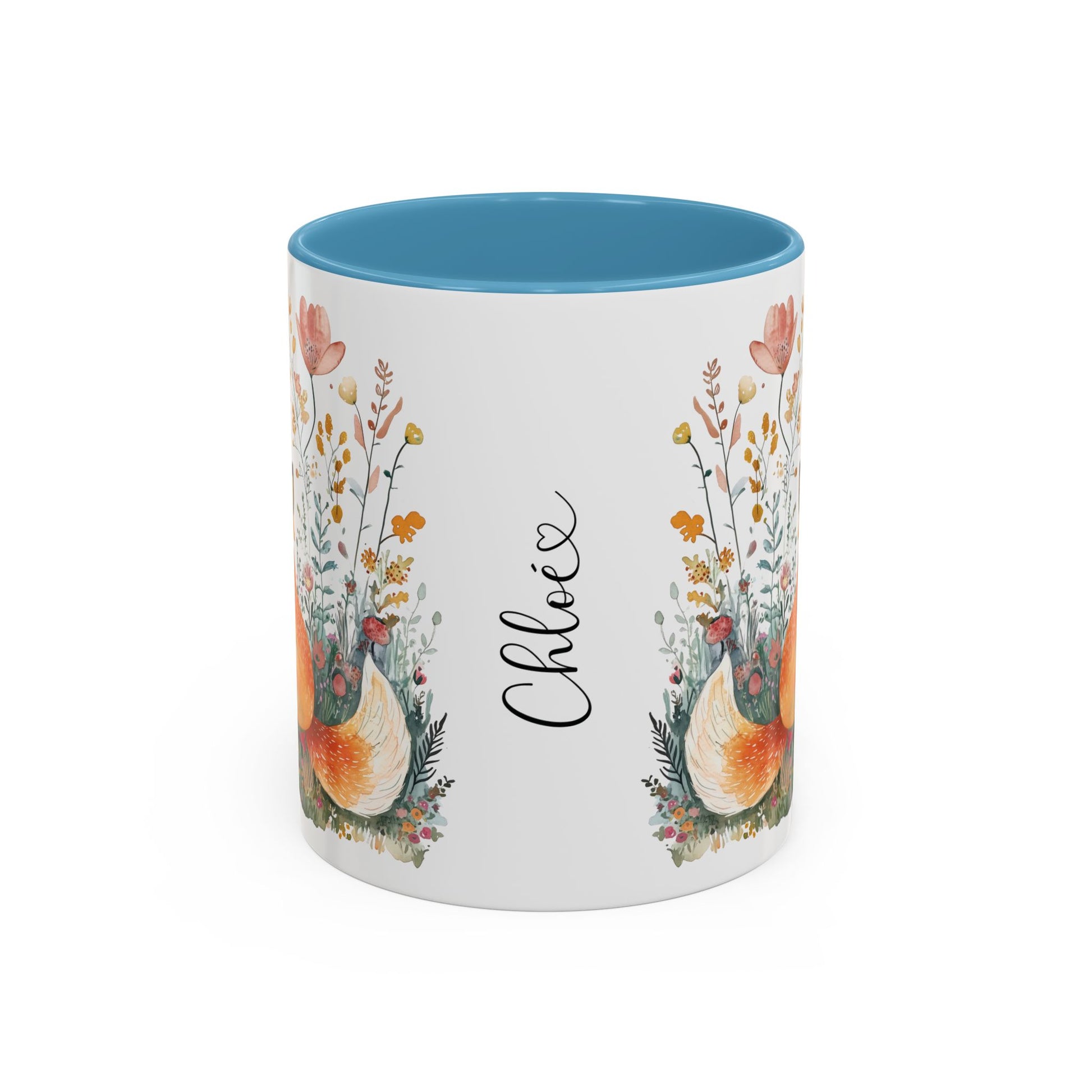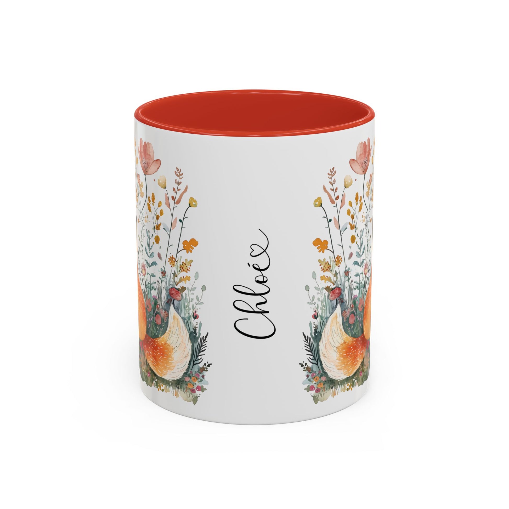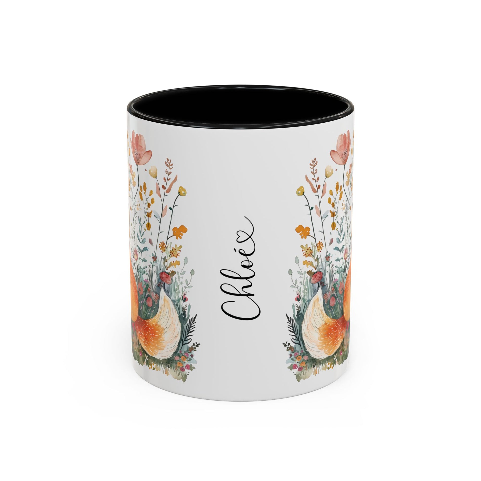 This personalised fox mug features a charming fox nestled among soft florals in a whimsical, cottage-core style. Finished with a colourful handle and interior, it’s perfect for cosy mornings, tea breaks, or gifting someone special.