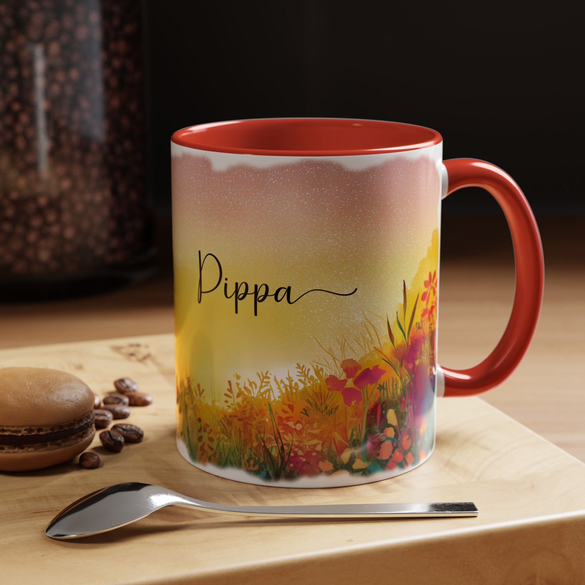 This personalised fox mug features a graceful fox set against a warm sunrise sky, surrounded by vibrant meadow florals. The soft, glowing colours create a peaceful, storybook feel that’s perfect for cosy mornings.