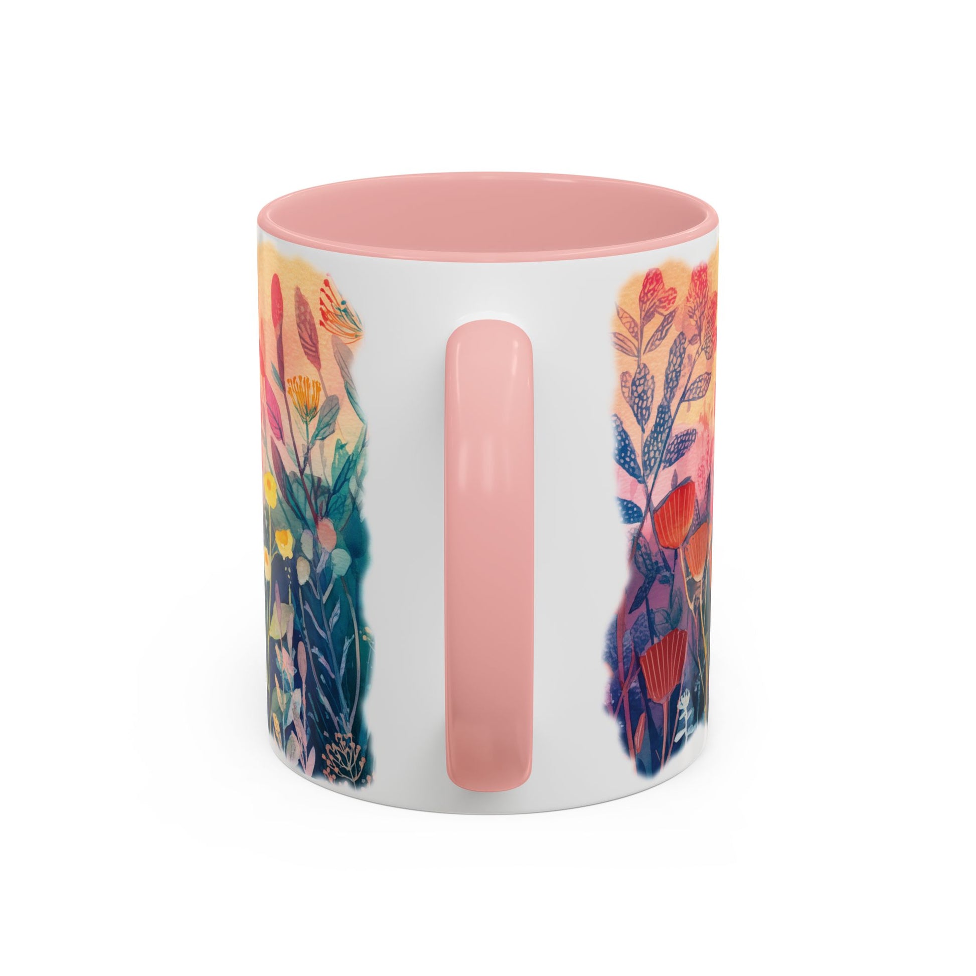 These mugs sport a two-tone design made from a white ceramic base complimented by colorful interior and handle accents.