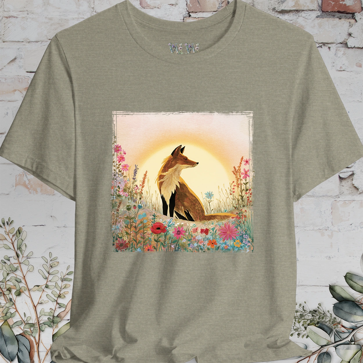 Step into a world of gentle magic with our Fox Sunrise T-Shirt, featuring a serene fox basking in a glowing sunrise surrounded by wildflowers. This dreamy, watercolor-style artwork captures the quiet beauty of nature and the wonder found in life’s peaceful moments.