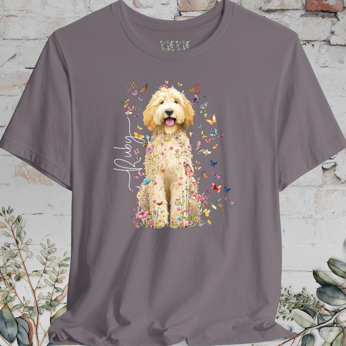 🦋 Celebrate your love for your Golden Doodle with our Personalized Golden Doodle T-shirt, featuring a colorful floral design. This custom gift is perfect for any Golden Doodle lover or owner, offering a floral custom shirt that's as unique as their bond with their furry friend. Add your fur baby's name for that special touch, or give as a perfect gift to a loved one.