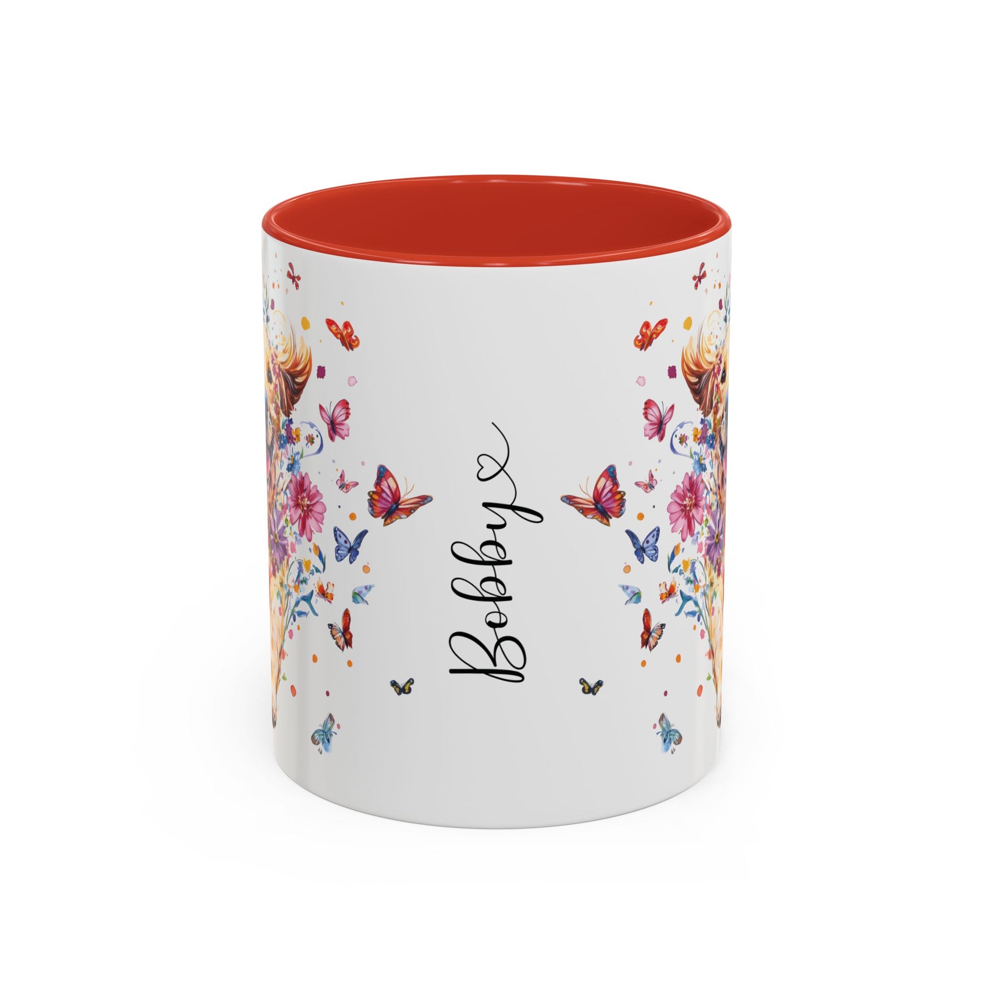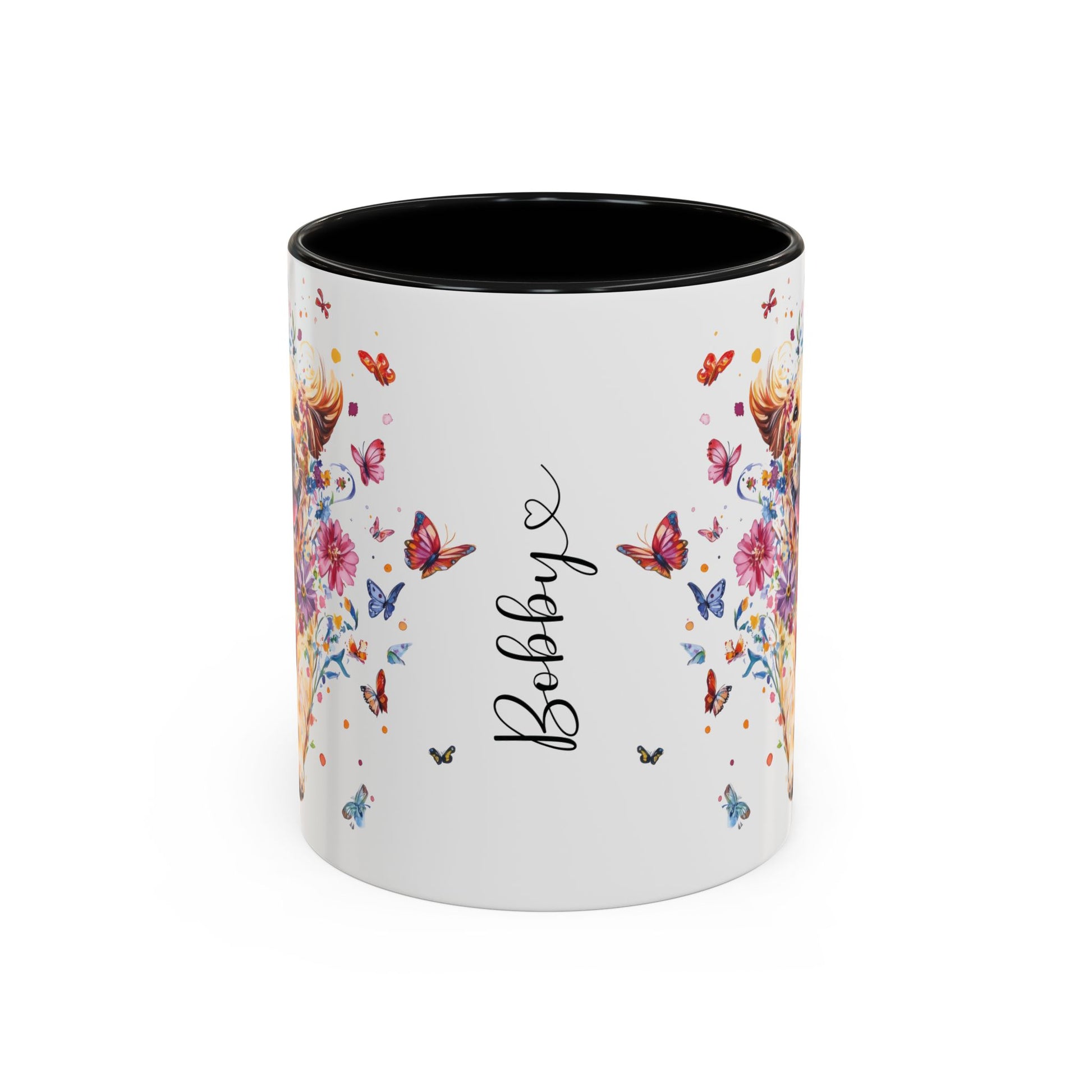 Personalised Golden Retriever butterfly ceramic coffee mug, 11oz. Customise with either your name or your Golden's name.