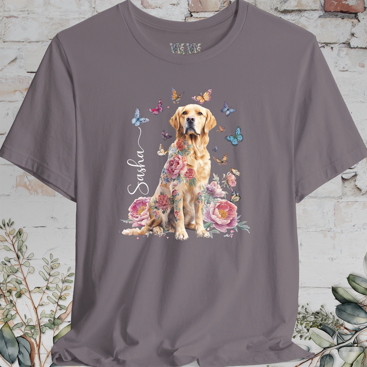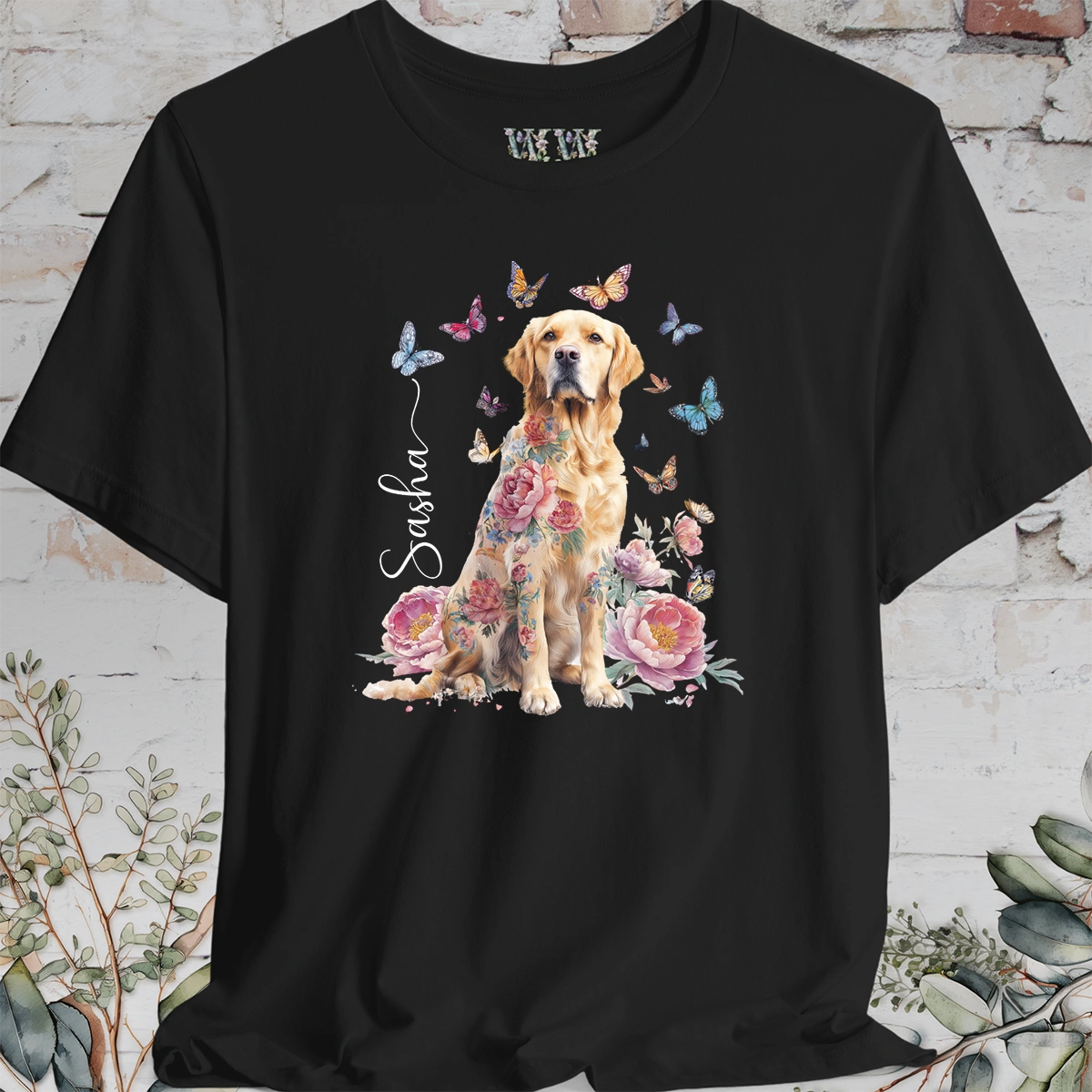🦋 Celebrate your love for your Golden Retriever with our Personalized Golden Retriever T-shirt, featuring beautiful Peonys & delicate butterflies. This custom gift is perfect for any Golden Retriever lover or owner, offering a floral custom shirt that's as unique as their bond with their furry friend. Add your fur baby's name for that special touch, or give as a perfect gift to a loved one.