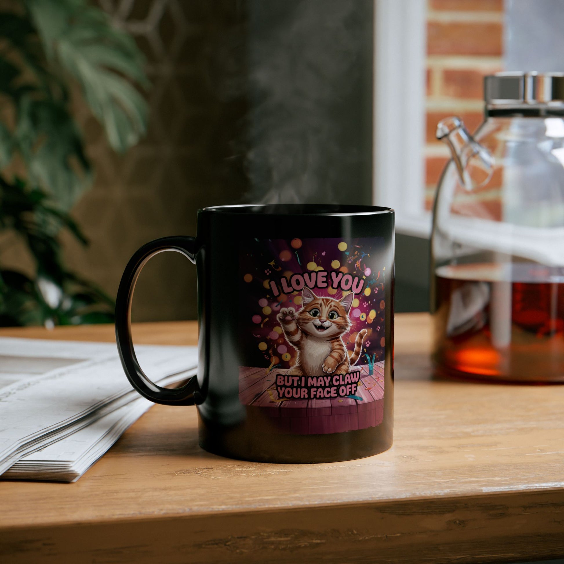 Add some attitude to your morning coffee with our personalised Funny Cat Mug – “I Love You, But I May Claw Your Face Off.” Featuring a vibrant, adorable kitty illustration and optional custom name, this mug is the perfect gift for cat lovers with a sense of humour.