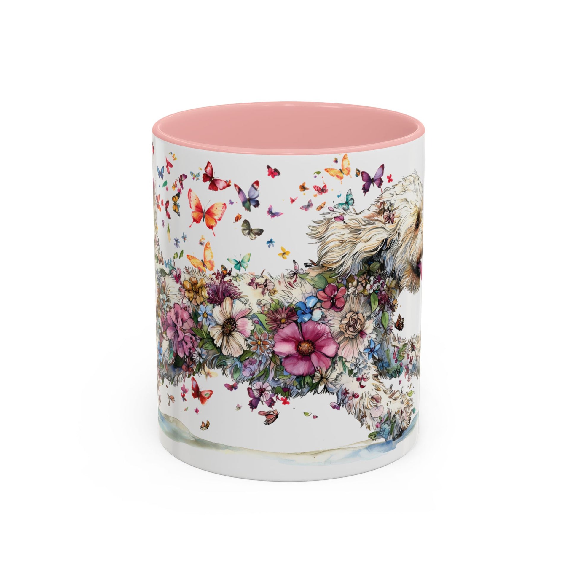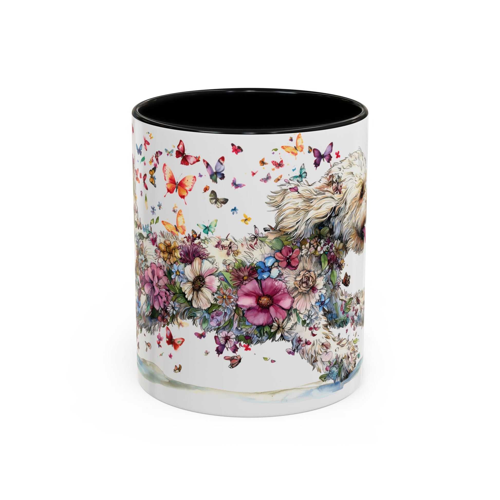 Personalised Labradoodle butterfly ceramic coffee mug, 11oz. Customise with either your name or your Labradoodle's name.