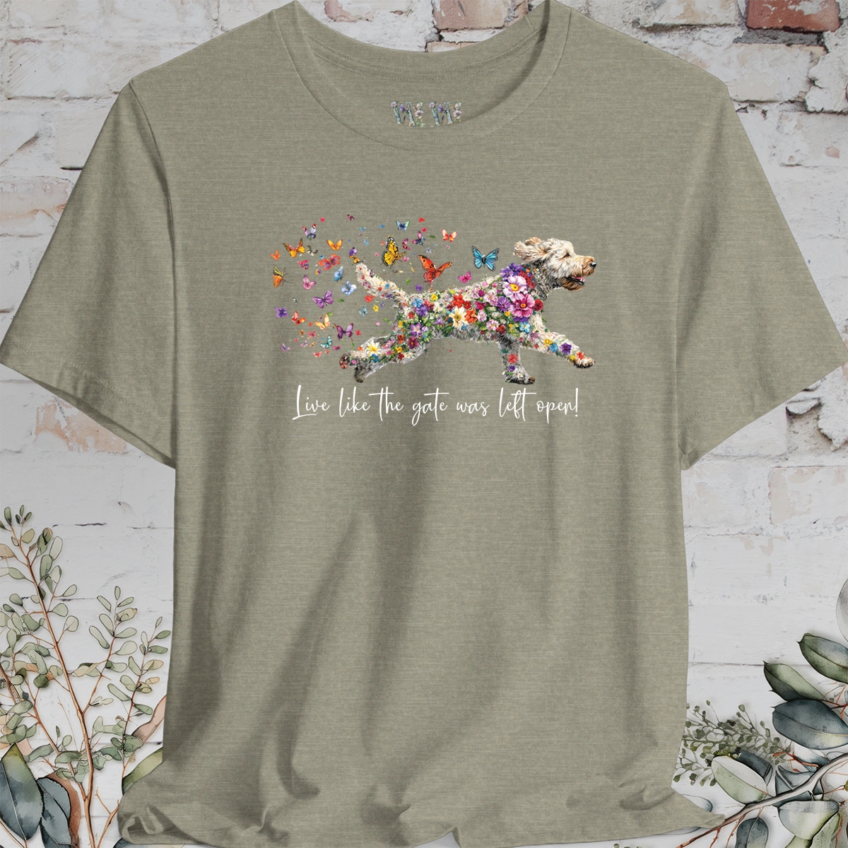 Labradoodle #3 "Live like the gate was left open" T shirt