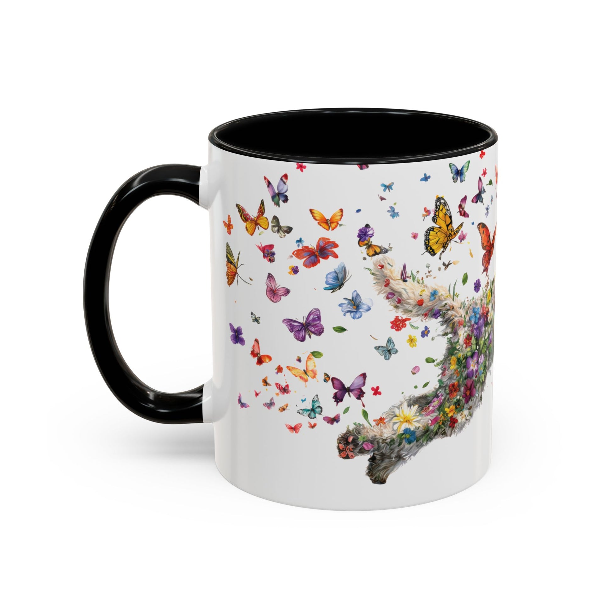 Personalised Labradoodle butterfly ceramic coffee mug, 11oz. Customise with either your name or your Labradoodle's name.