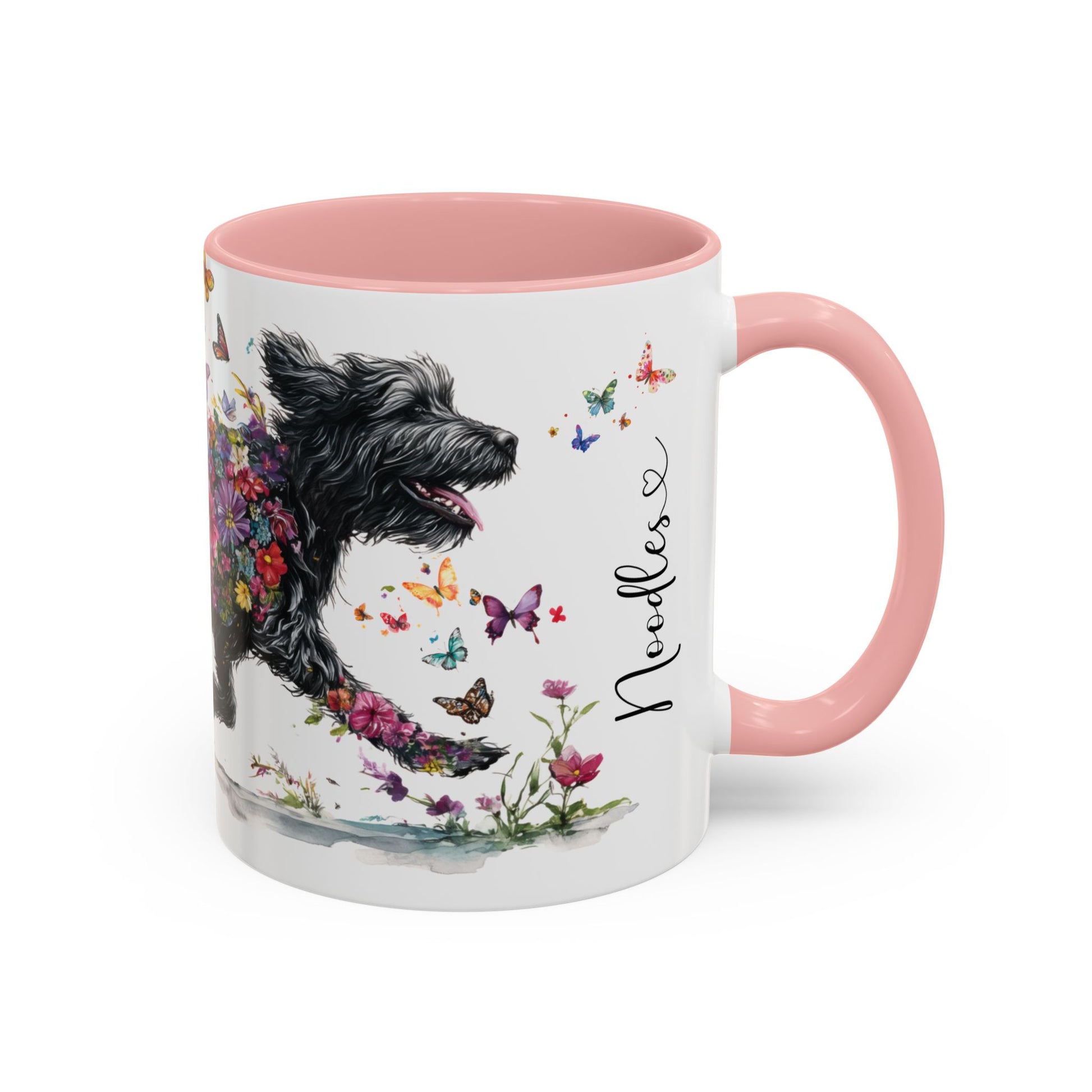 Personalised Labradoodle/Groodle butterfly ceramic coffee mug, 11oz. Customise with either your name or your Labradoodle/Groodle's name.