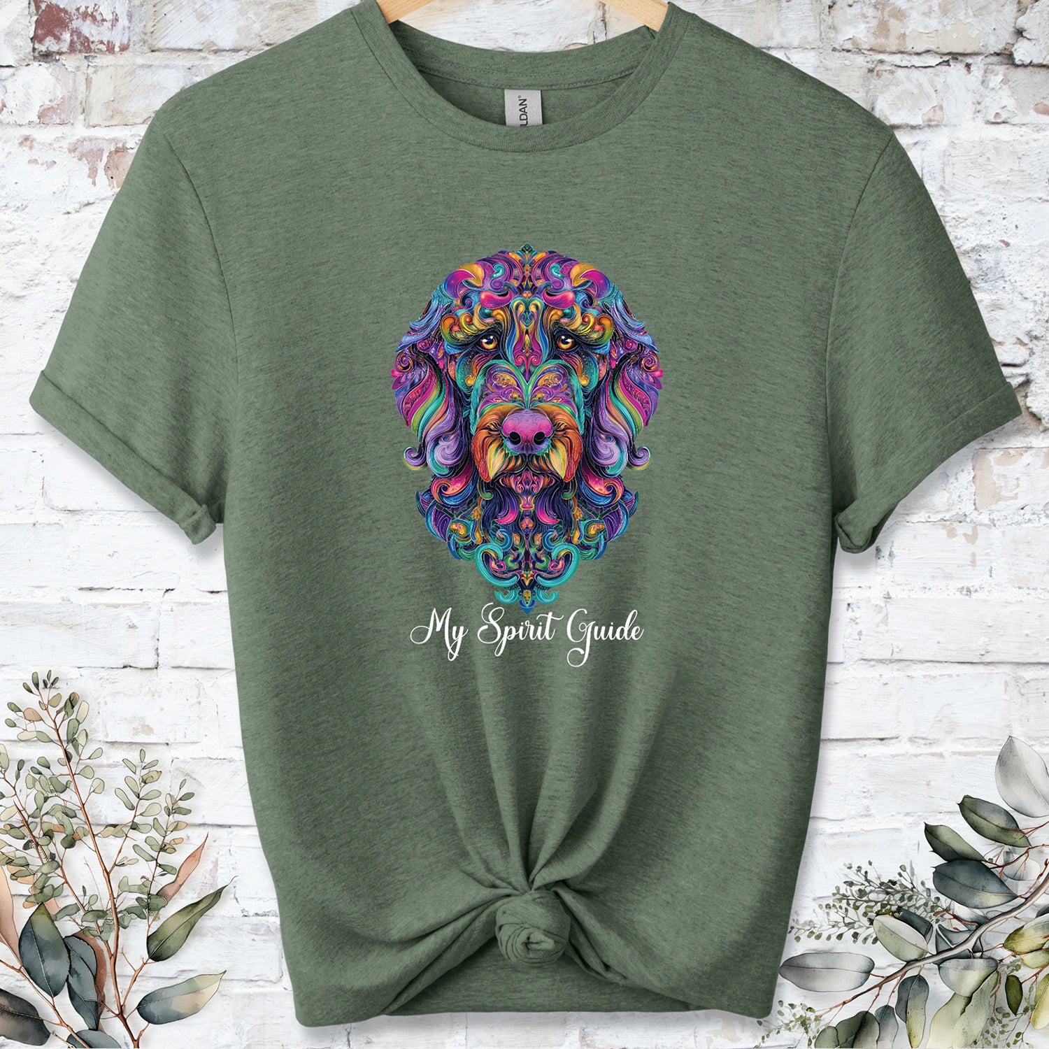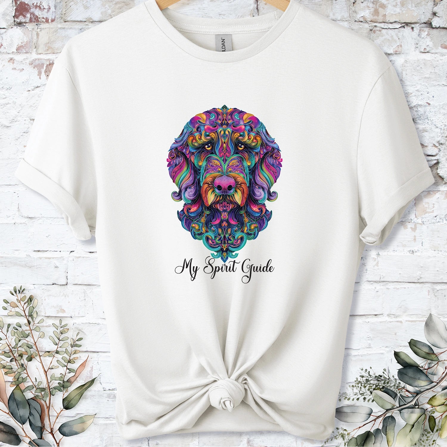 Celebrate the magical bond you share with your Labradoodle with this vibrant “My Spirit Guide” T-shirt. Featuring an intricate, colourful artistic design, this tee captures the intelligence, loyalty, and soulful presence of the Labradoodle in stunning detail.
