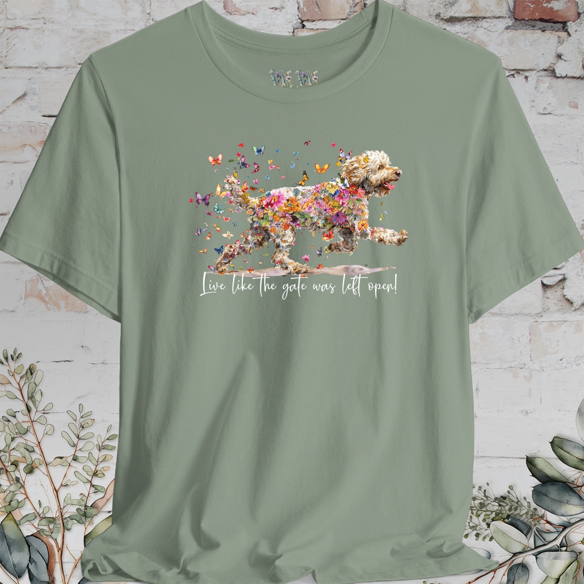 Lagotto Romagnolo #1 "Live like the gate was left open" Unisex T shirt