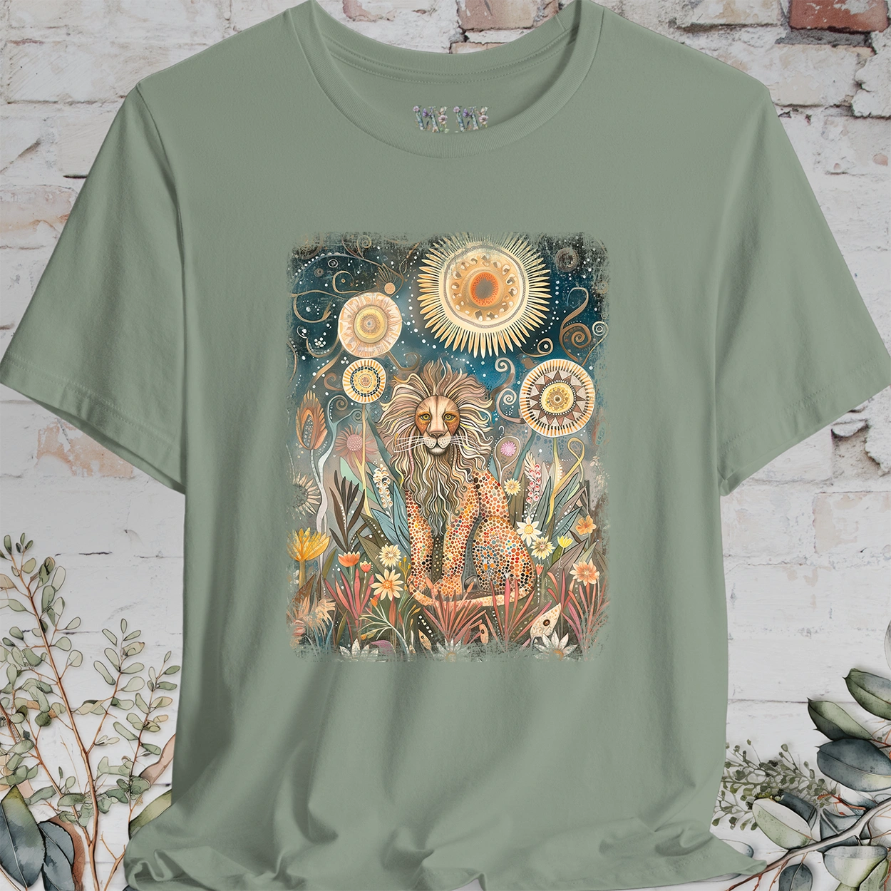 Embrace magic with this whimsical T-shirt featuring a mystical Lion nestled among dreamy wildflowers in an African setting. Perfect for cottage core lovers, this enchanting design captures the beauty & the allure of nature. A perfect gift for anyone who loves natures perfect creatures and the charm of the outdoors.