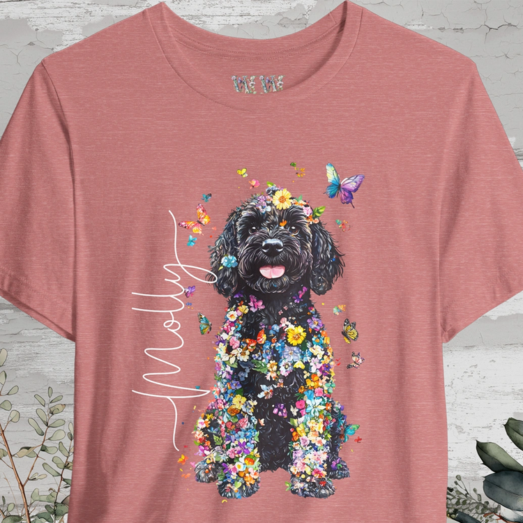 🦋 Celebrate your love for your Portugese Water Dog with our Personalized Portugese Water Dog T-shirt, featuring a colorful floral design. This custom gift is perfect for any Portugese Water Dog lover or owner, offering a floral custom shirt that's as unique as their bond with their furry friend. Add your fur baby's name for that special touch, or give as a perfect gift to a loved one.