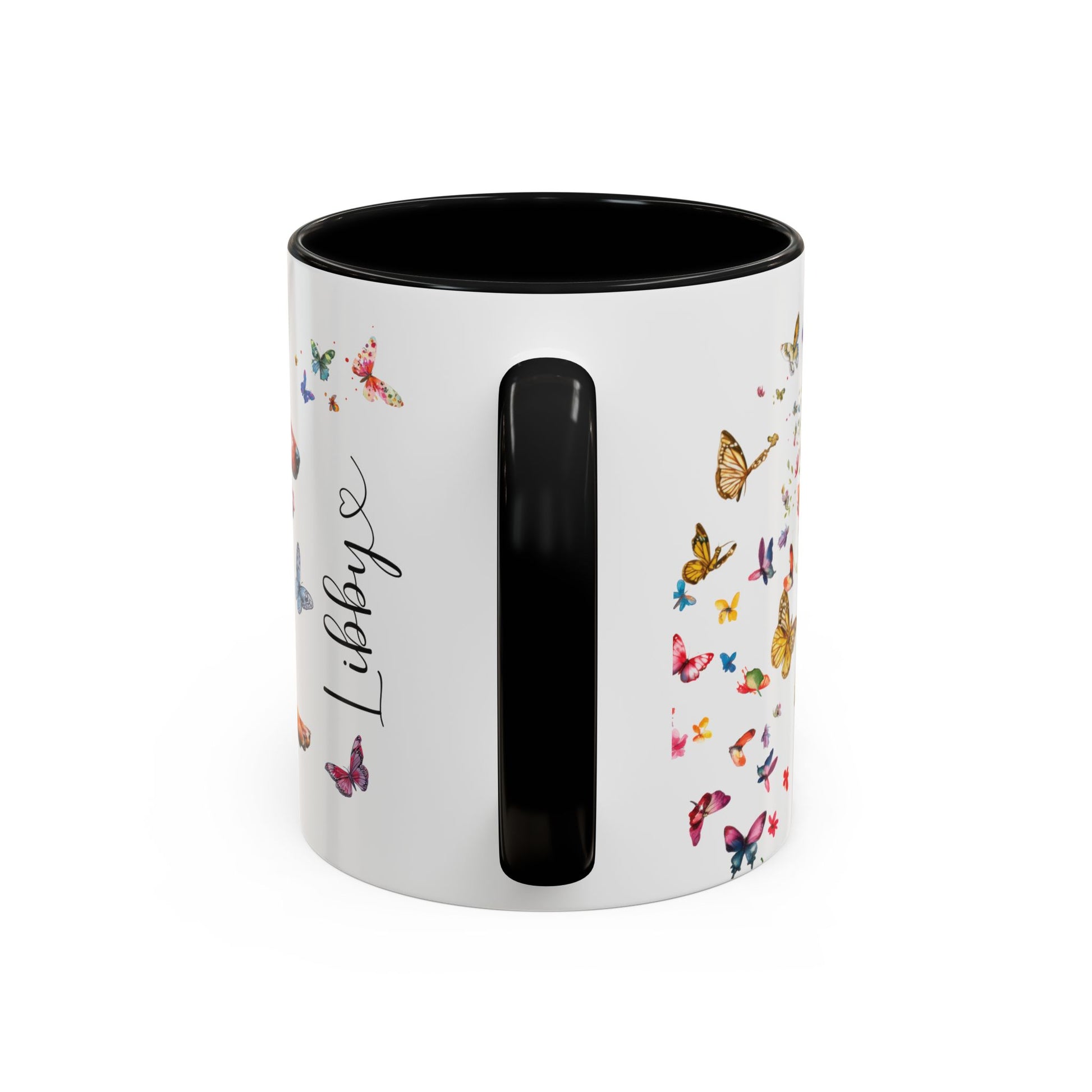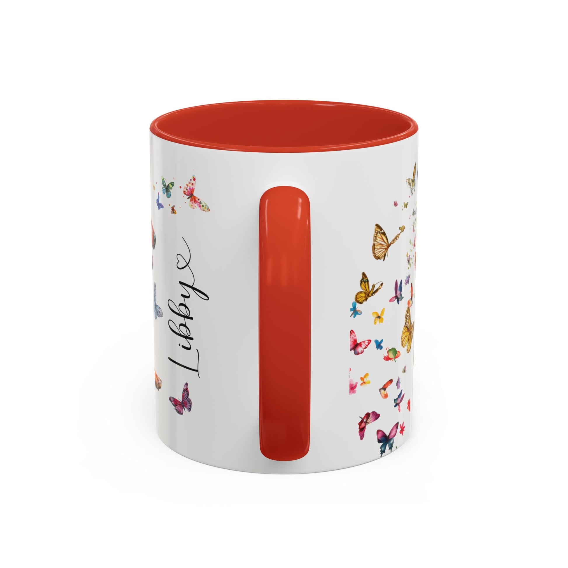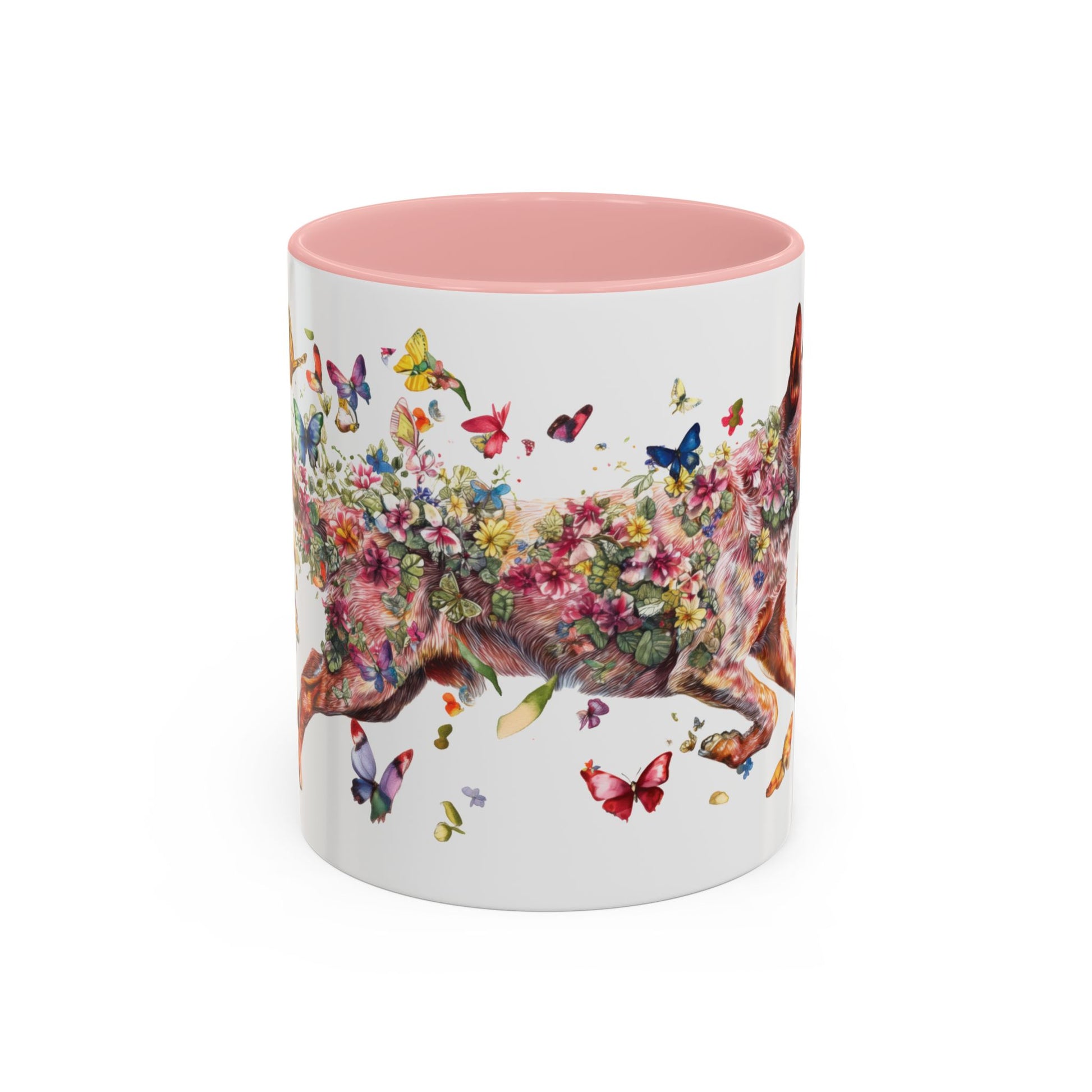Personalised Red Heeler butterfly ceramic coffee mug, 11oz. Customise with either your name or your Red Heeler's name.