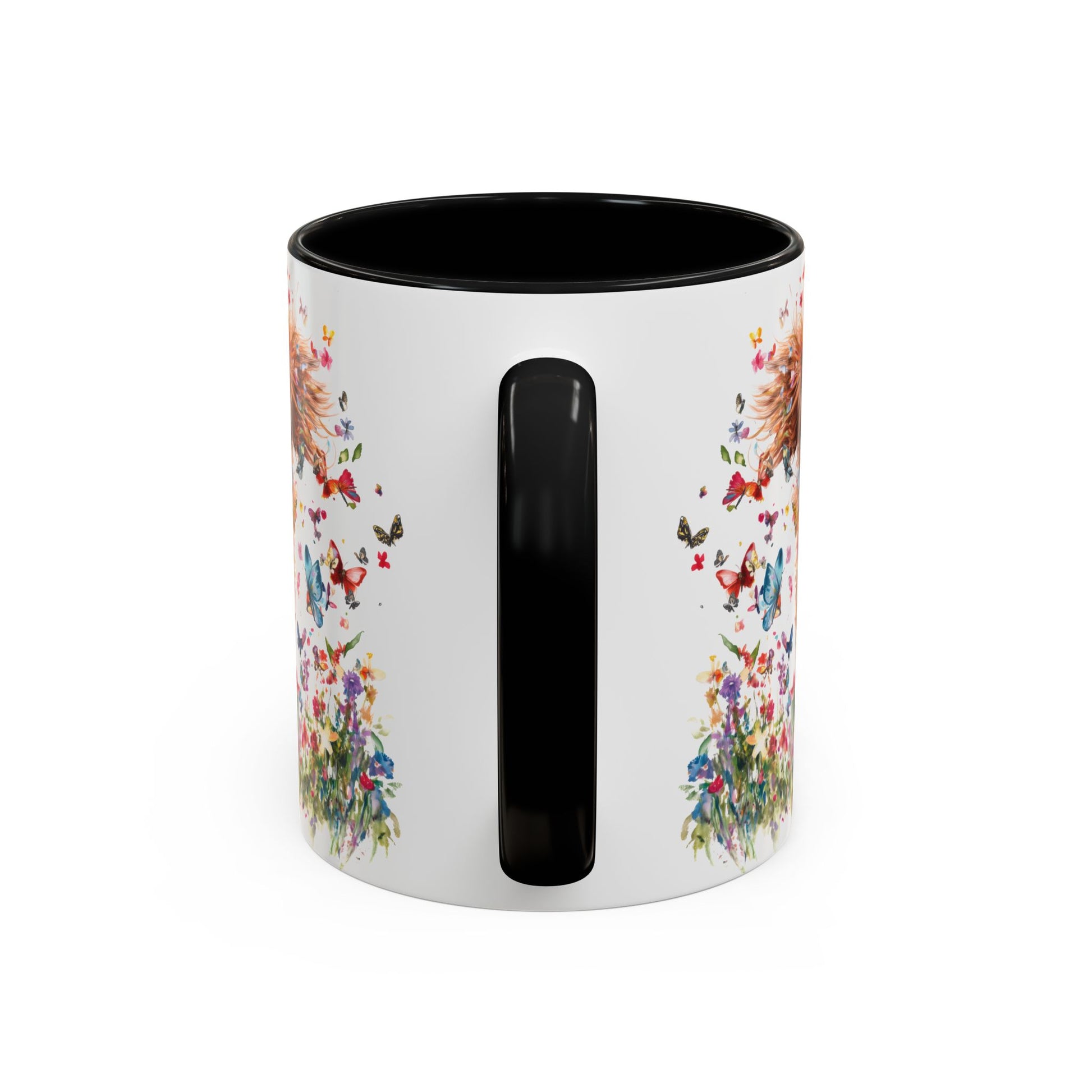 Personalised Ruby Cavalier King Charles Spaniel butterfly ceramic coffee mug, 11oz. Customise with either your name or your Cavalier's name.