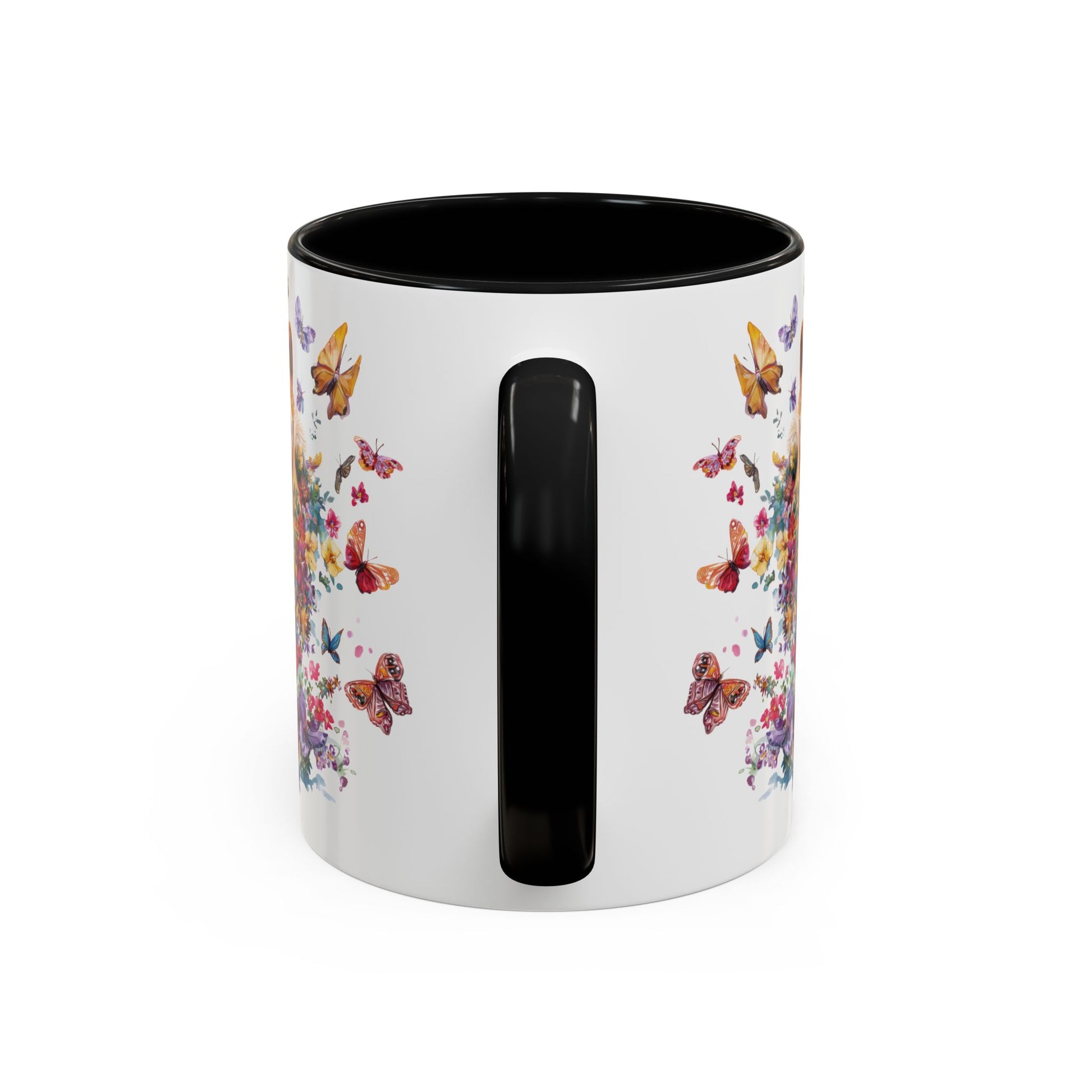 Personalised Black Shiba Inu butterfly ceramic coffee mug, 11oz. Customise with either your name or your Shiba Inu's name.