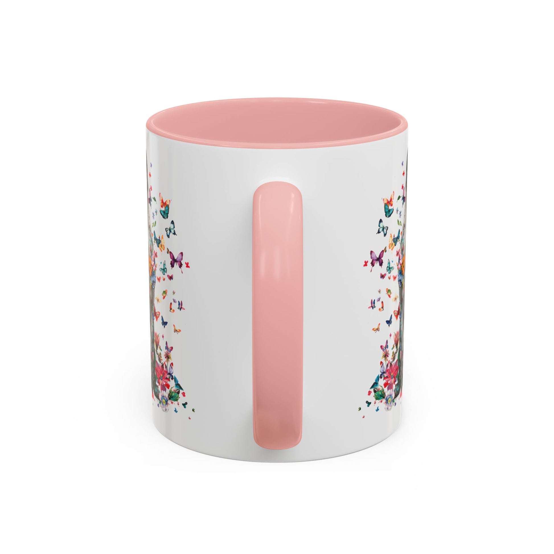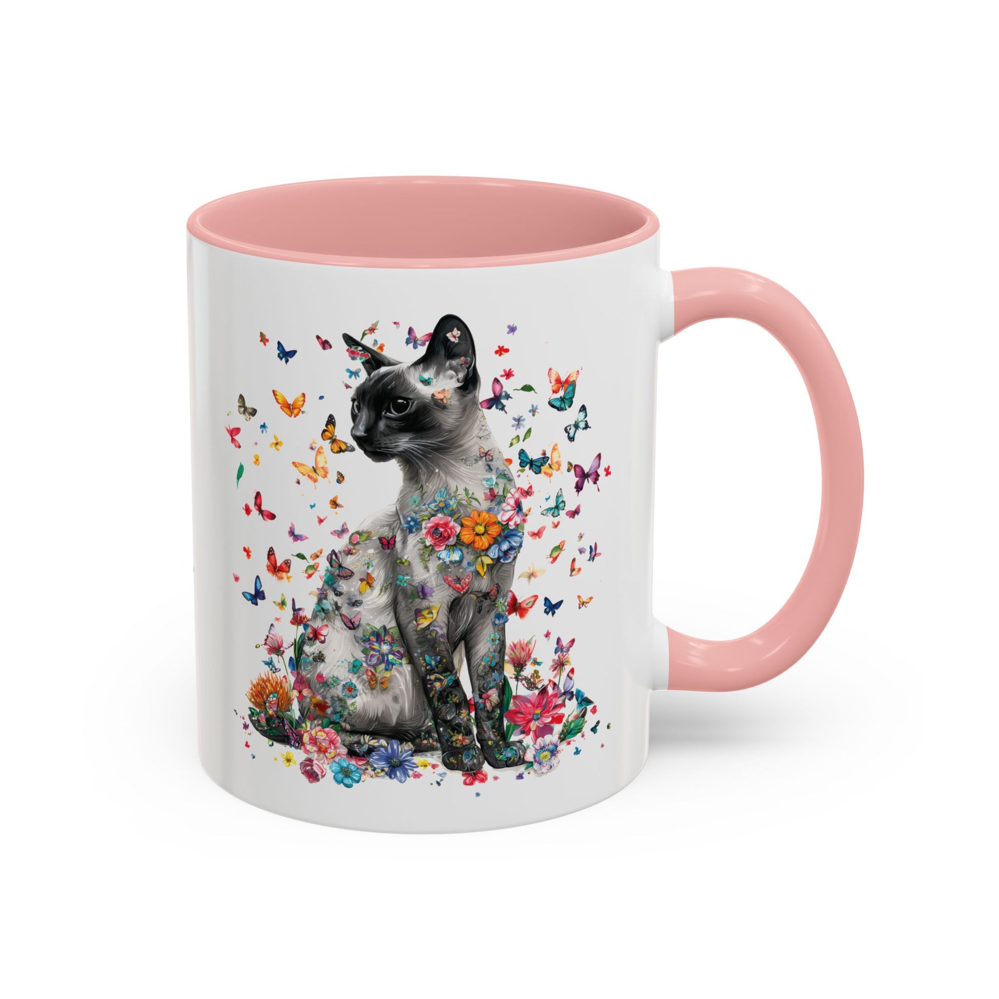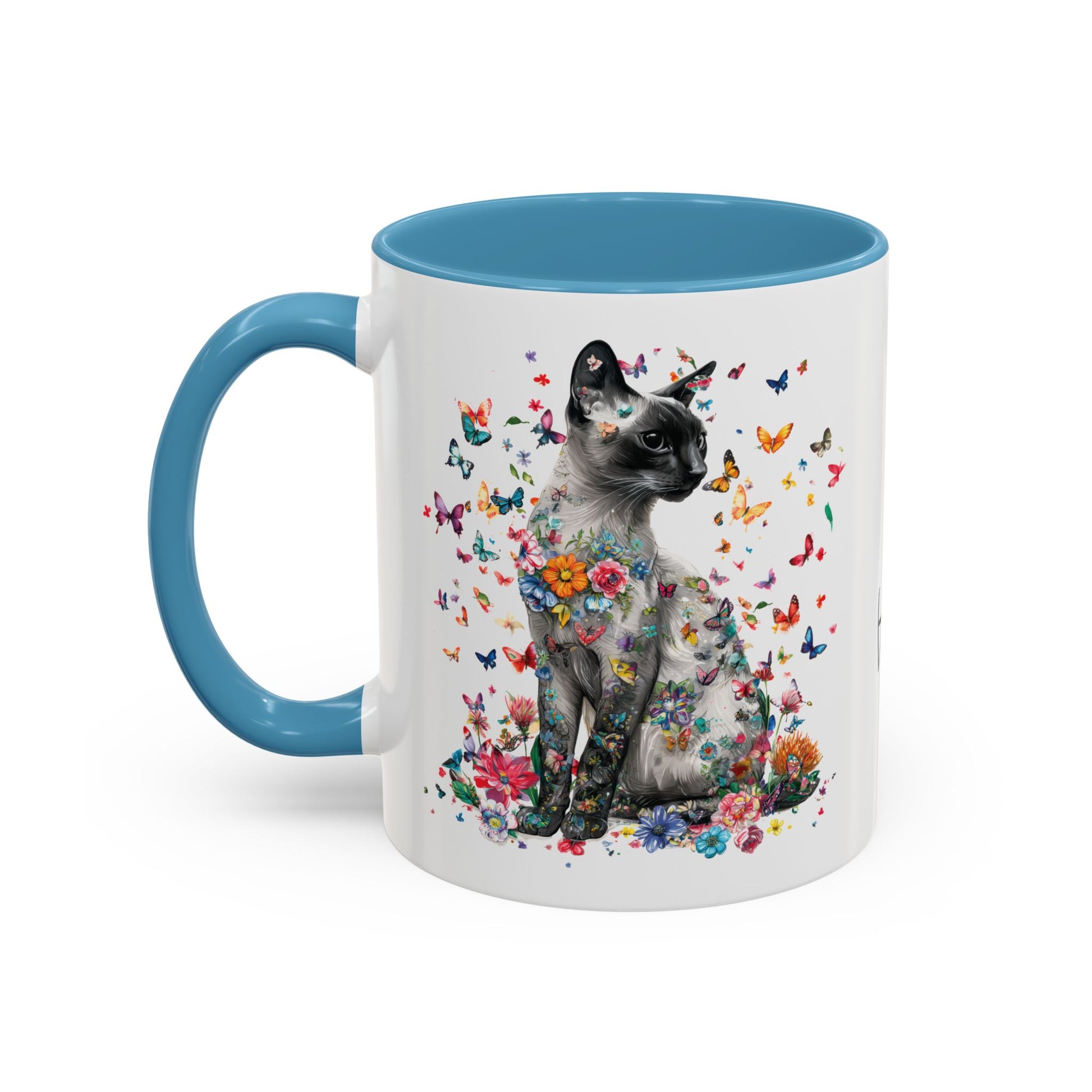 Personalised Siamese Cat butterfly ceramic coffee mug, 11oz. Customise with either your name or your Siamese Cat's name.