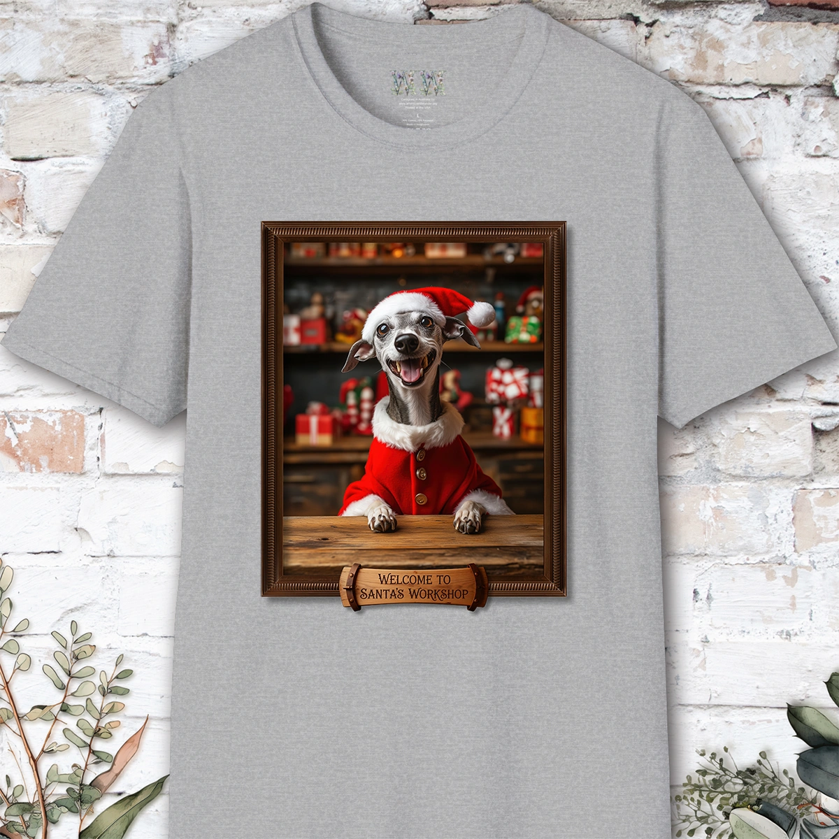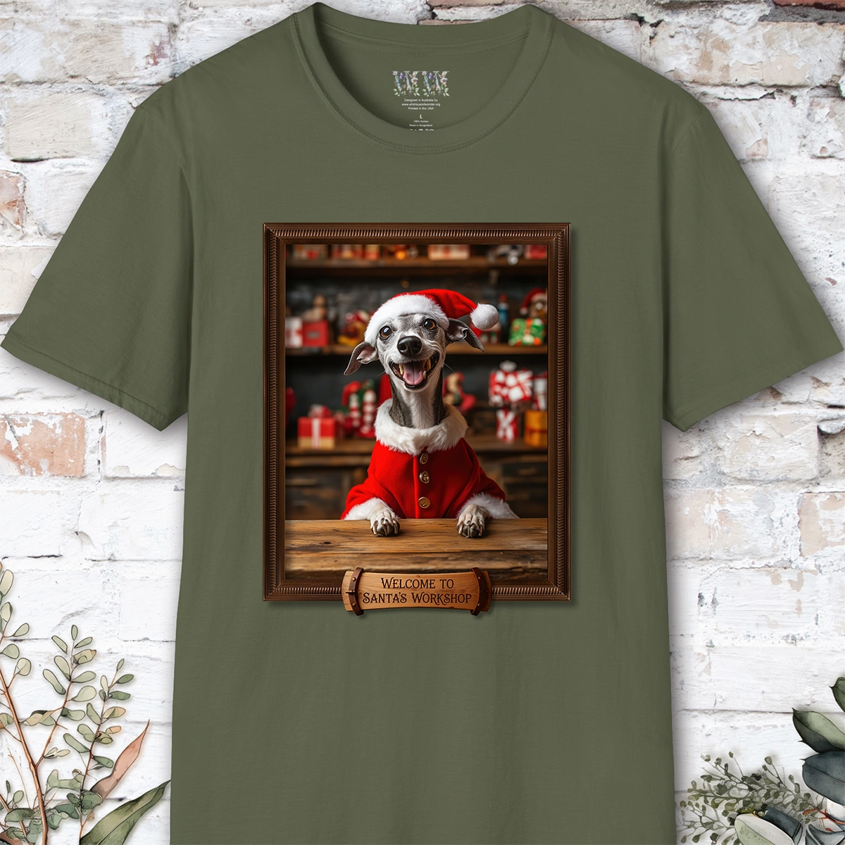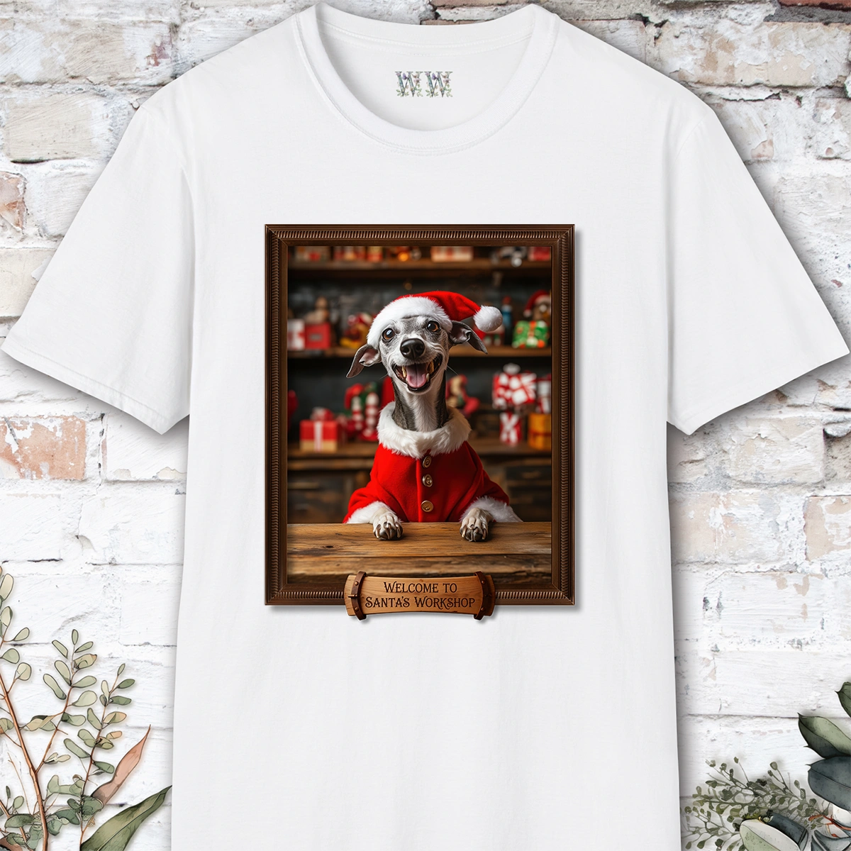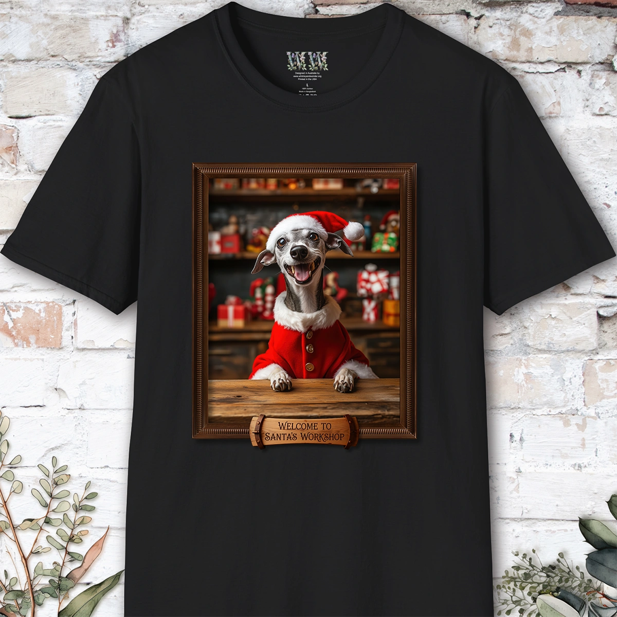 🦋 Step into holiday magic with this festive tee from Whimsy and Wonder! Featuring a joyful Whippet dressed as Santa in a cozy workshop scene, it’s the paw-fect way to spread cheer and celebrate the season with a wag and a smile.