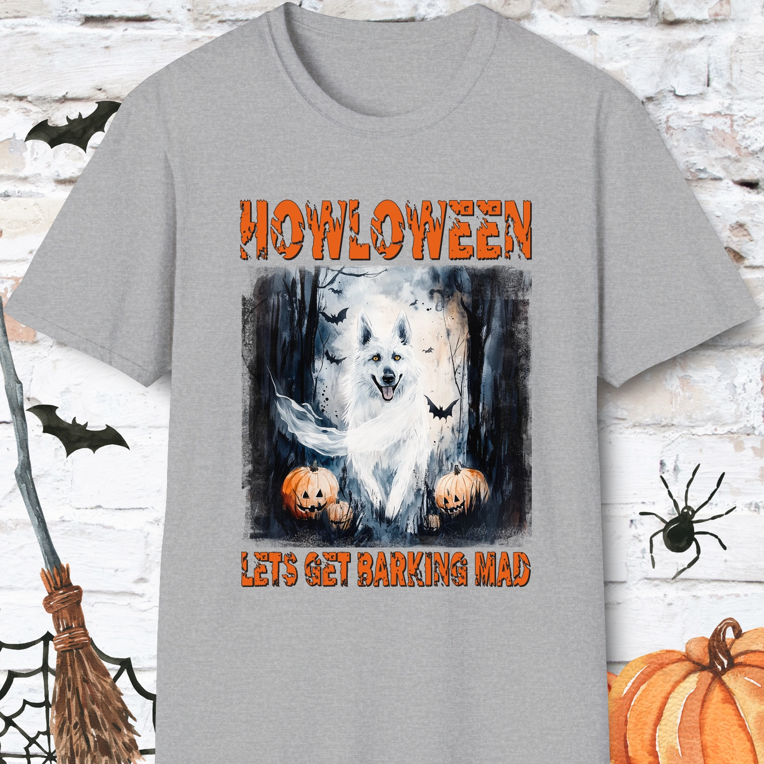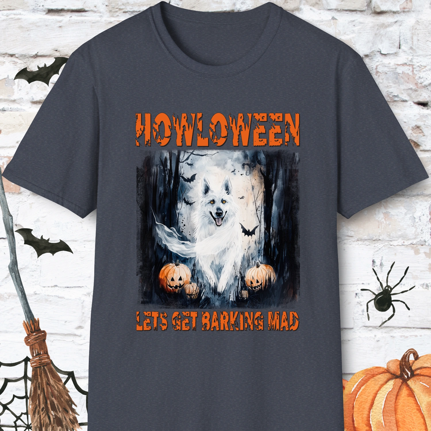 Celebrate Halloween in whimsical style with our 'Howloween' White Shepherd T-shirt. Featuring pumpkins, bats, and a playful pup, this festive dog lover tee is perfect for spooky season fun. A great Halloween shirt for White Shepherd owners and pet lovers alike.