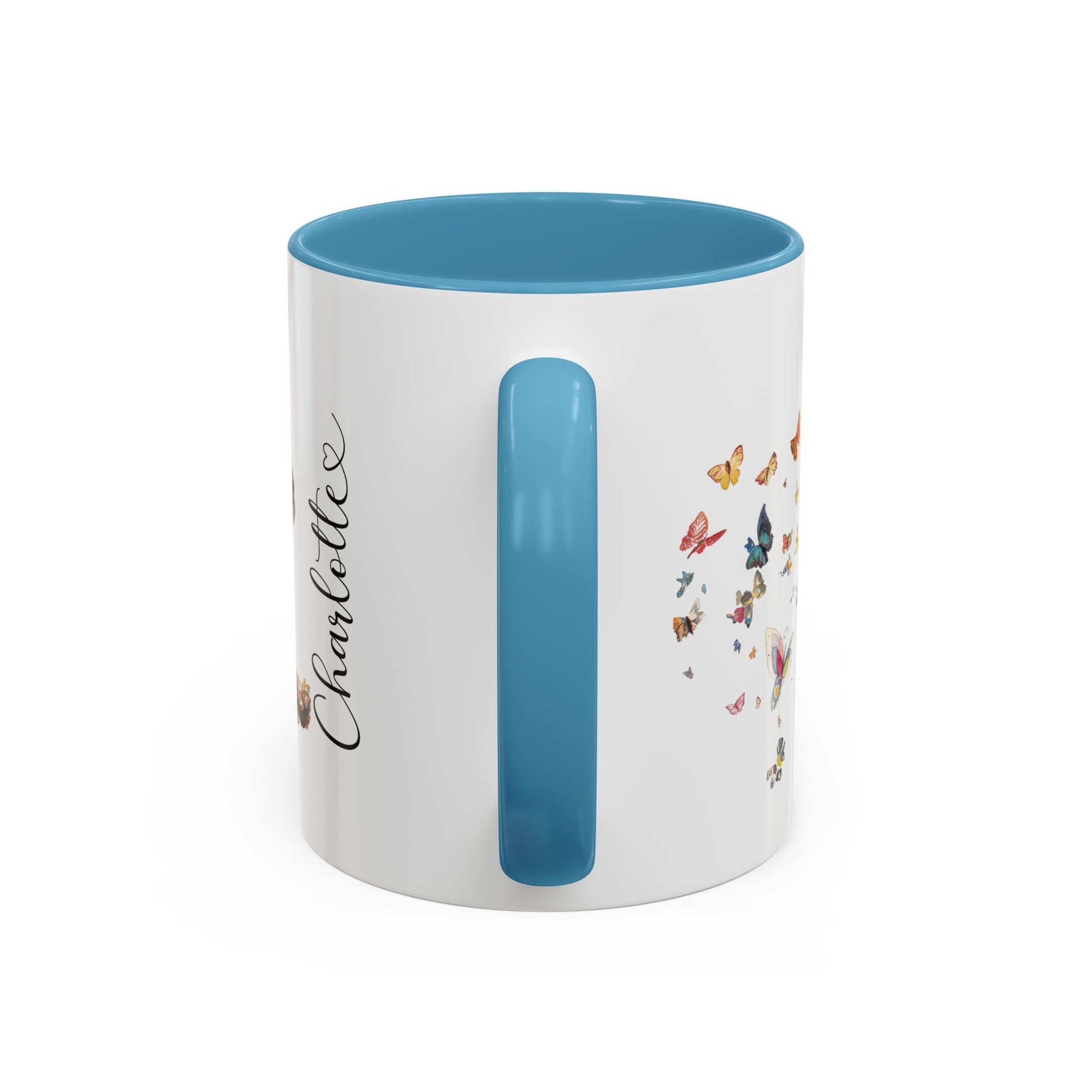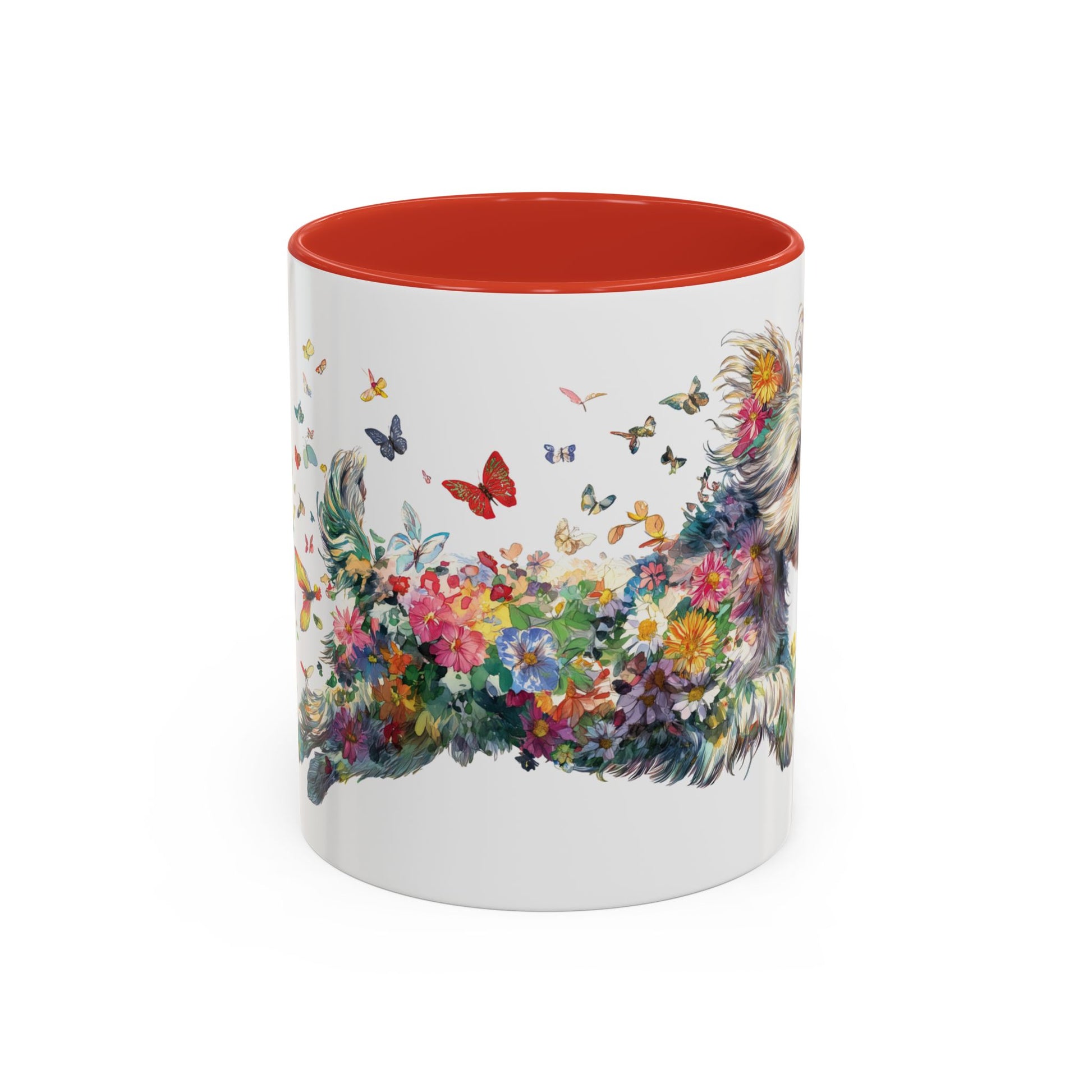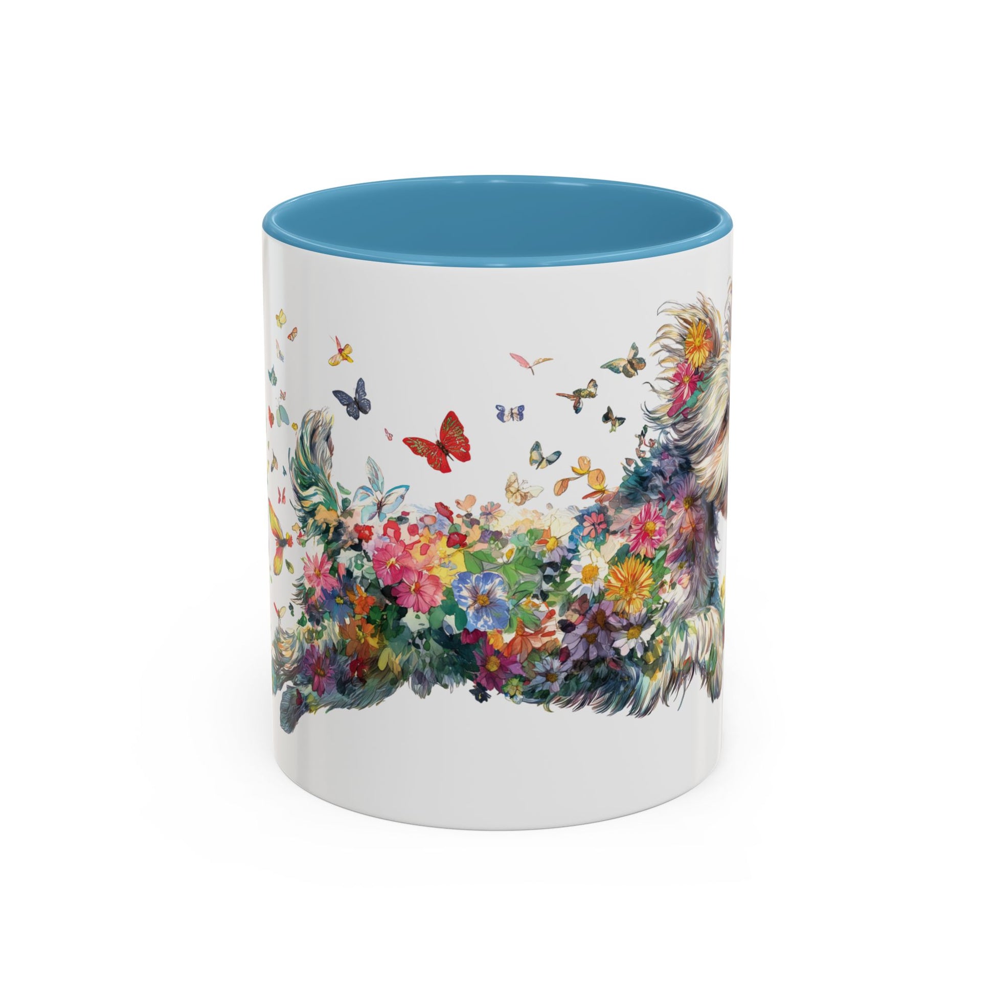 Personalised Yorkipoo butterfly ceramic coffee mug, 11oz. Customise with either your name or your Yorkipoo's name.